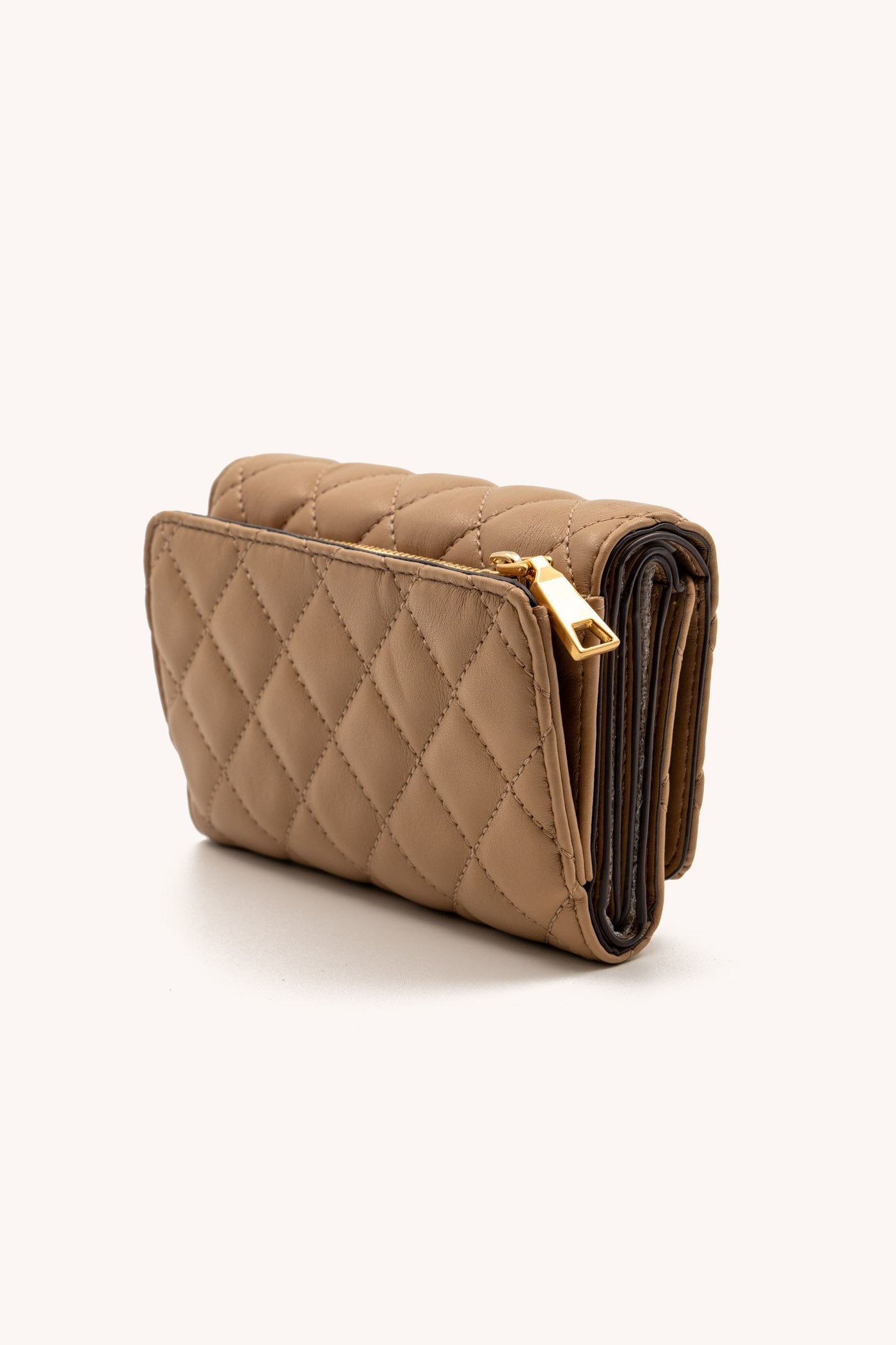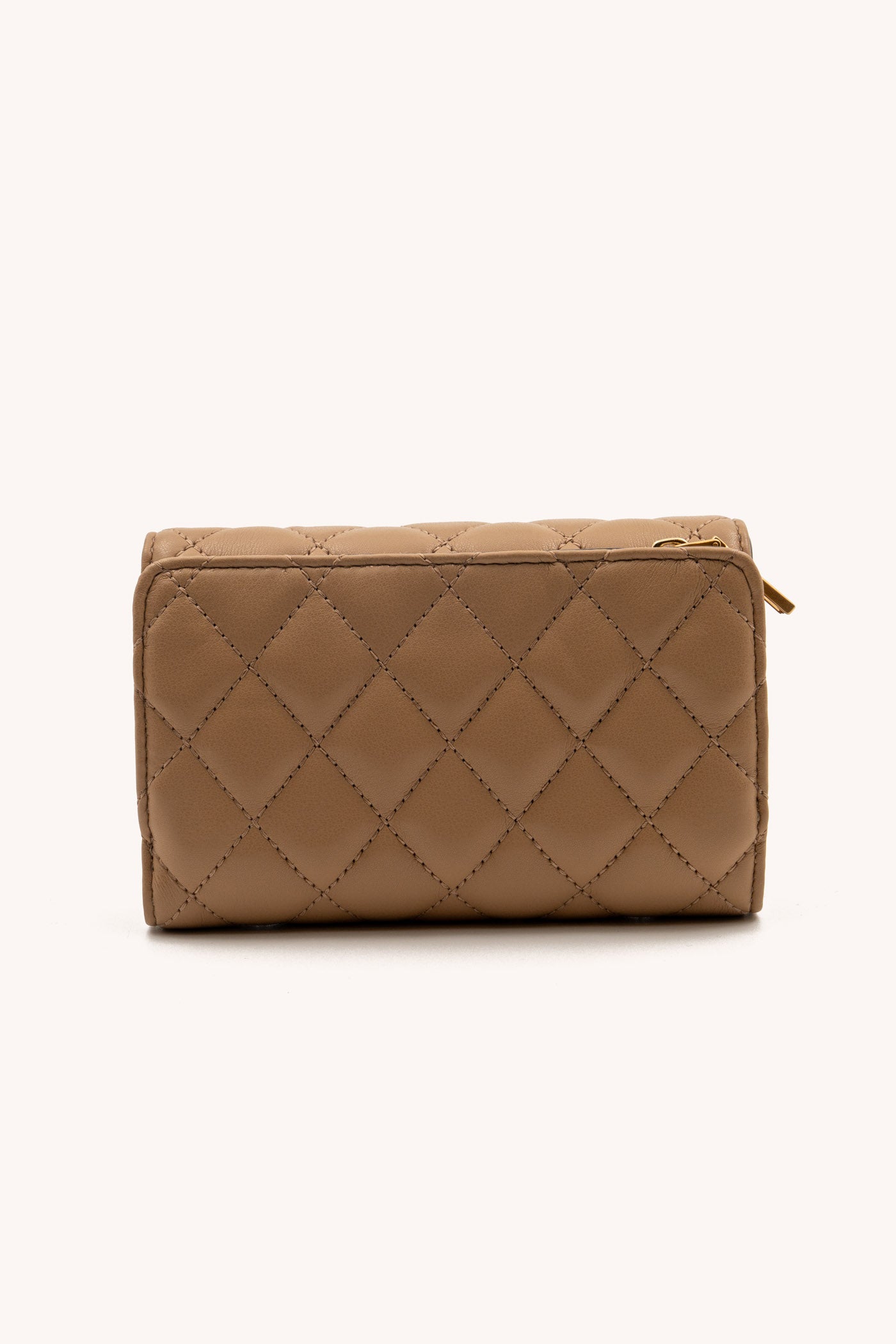 نظّمي أغراضكِ الأساسية بأناقة مع محفظة دكني ترينا ثلاثية الطي باللون البيج الأنيق. مصممة بعناية، حيث توفر فتحات واسعة للبطاقات، وجيبًا آمنًا للعملات المعدنية، وأجزاء معدنية ذهبية أنيقة، مما يجعلها الإكسسوار المثالي الأنيق للاستخدام اليومي.