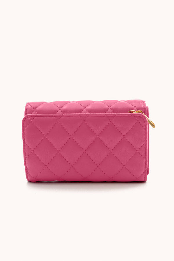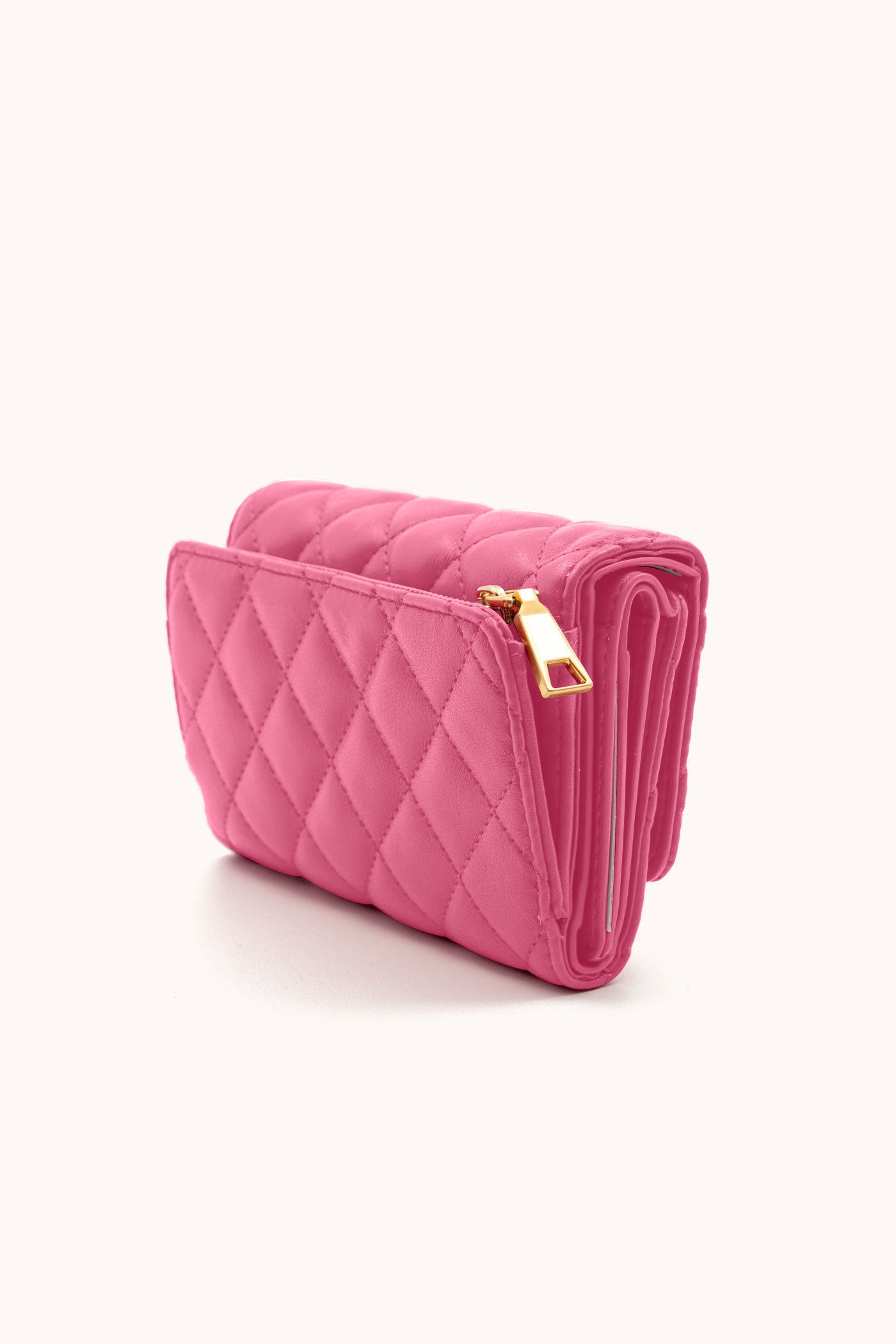 أضف لمسة من الألوان إلى أغراضك الأساسية مع محفظة دكني ترينا ثلاثية الطي باللون الوردي النابض بالحياة. تم تصميم هذه المحفظة لتمزج بين الأناقة والعملية، وتتميز بجيوب متعددة وتفاصيل ذهبية أنيقة، مما يحافظ على بطاقاتك ونقودك آمنة بكل سهولة ويسر.