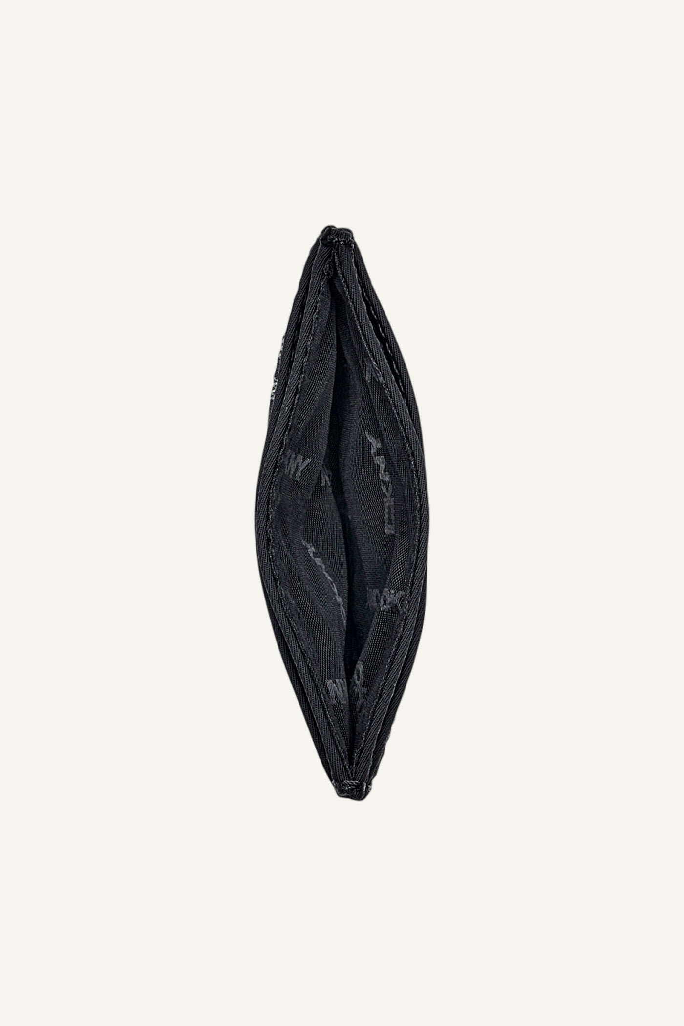 توفر حافظة بطاقات دكني جيني الأنيقة والرائعة باللون الأسود الكلاسيكي تنظيمًا سلسًا لمستلزماتك الأساسية. تتمبز هذه الحافظة المدمجة والمصنوعة من مواد فاخرة بفتحات متعددة، وشعار علامة تجارية مميز، وتصميم صغير مثالي للجيوب وحقائب اليد والإكسسوارات العصرية.