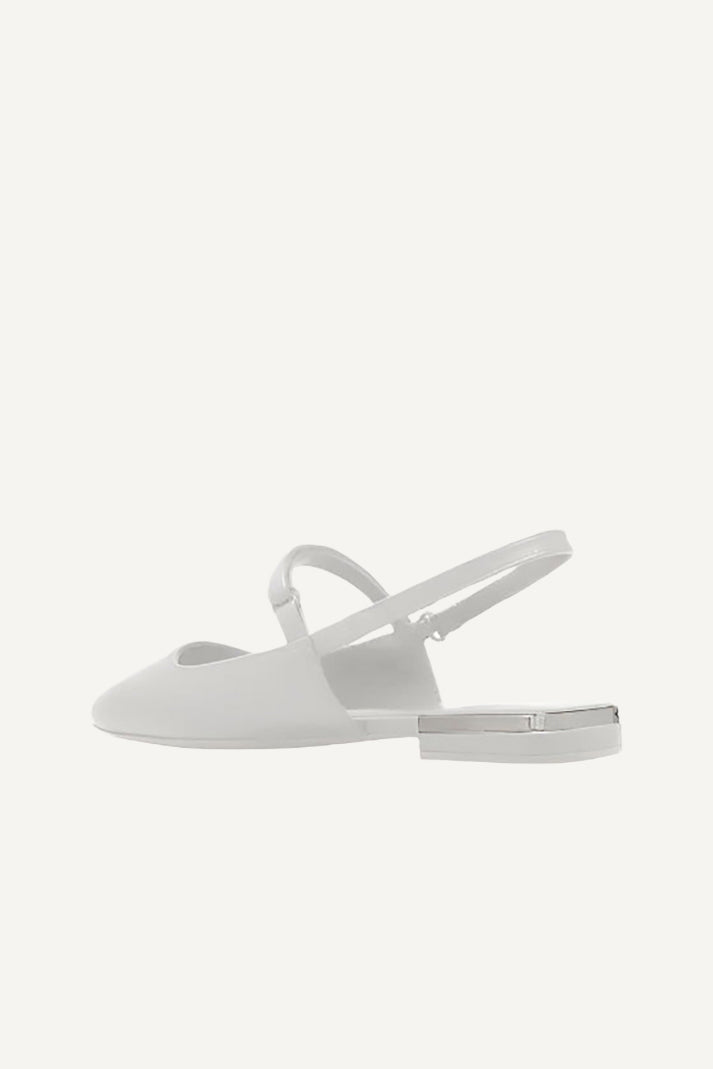 انطلقي نحو الأناقة مع حذاء DKNY DARROW Slingback Flat باللون الأبيض الكلاسيكي. يتميز هذا الحذاء الأنيق بقصّة أنيقة ومريحة، بتصميم أنيق مثالي لأي مناسبة. ارتقِ بإطلالتك بكل سهولة مع هذا الحذاء المسطح متعدد الاستخدامات والعصري.