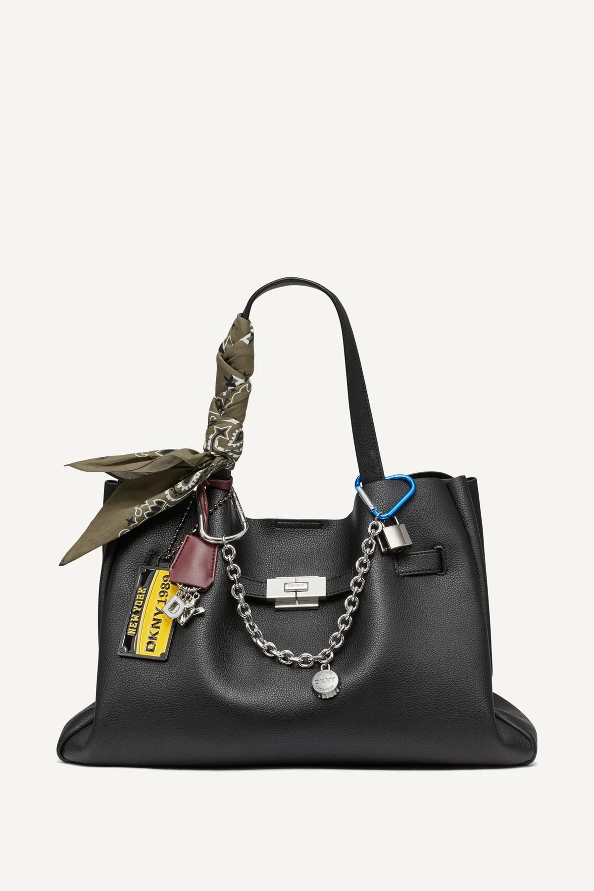 ارتقي بإطلالتك اليومية مع حقيبة دكني براير ساشتيل بدلاية كبيرة الحجم باللون الأسود الكلاسيكي. تتميز هذه الحقيبة الأنيقة بمقبض علوي، ودلاية أنيقة، وجيوب واسعة، وتفاصيل أنيقة، مما يجعلها مزيجًا مثاليًا بين الرقي والوظائف العملية لأسلوب الحياة العصري.