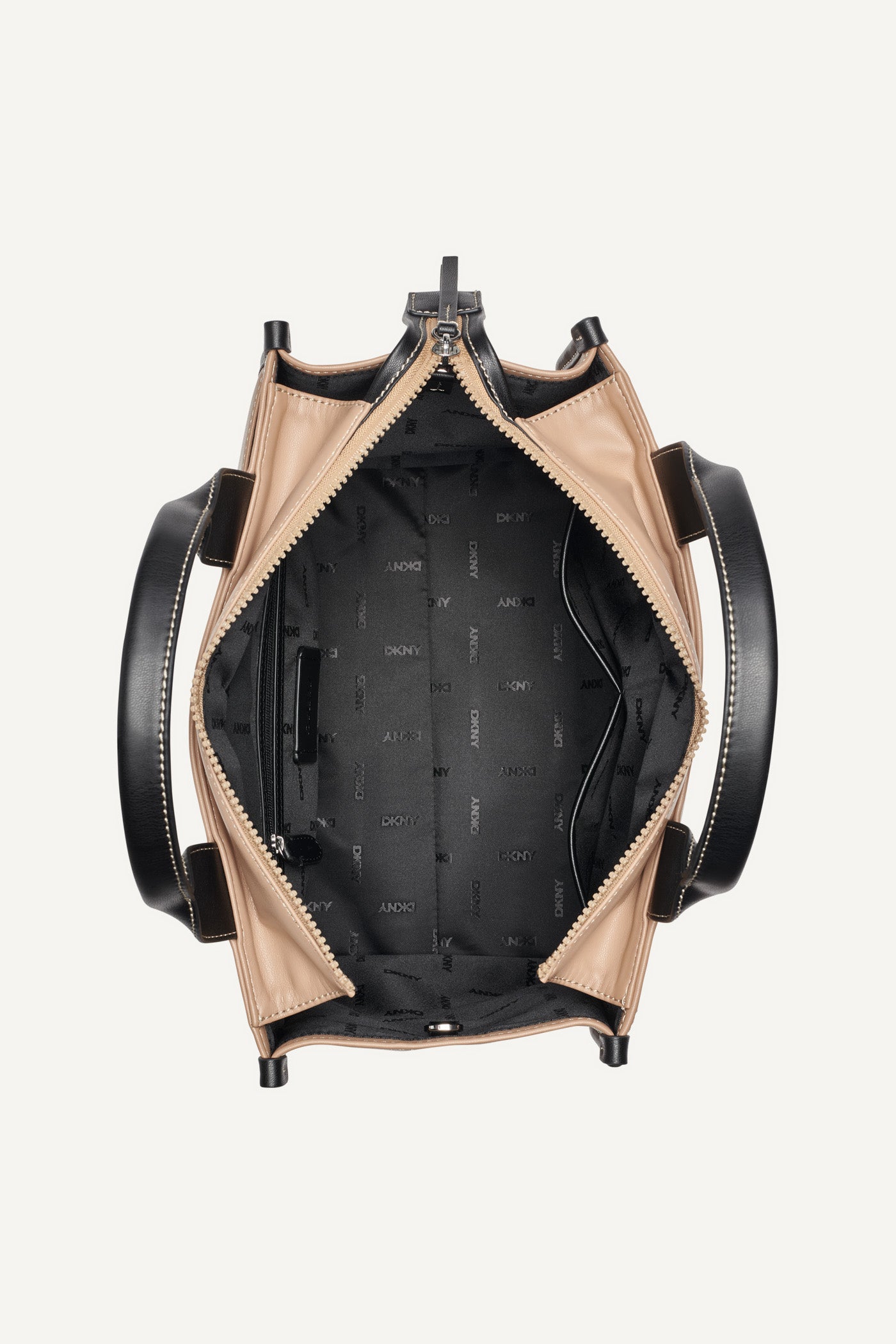 ارتقِ بإطلالتك اليومية مع حقيبة اليد دكني هادلي متوسطة الحجم باللون البيج الكلاسيكي. تتميز هذه الحقيبة الرائعة بتصميمها الكلاسيكي الأنيق، ومساحتها الداخلية الواسعة، ومقابضها المزدوجة المتينة، ما يجعلها حقيبة مثالية للعمل، أو لقضاء بعض المهام، أو نزهات نهاية الأسبوع الأنيقة.