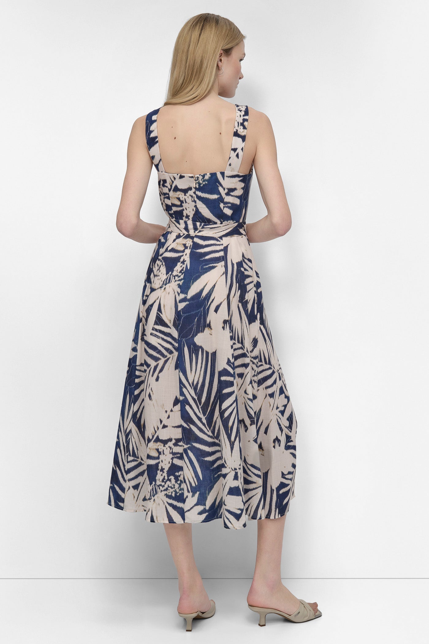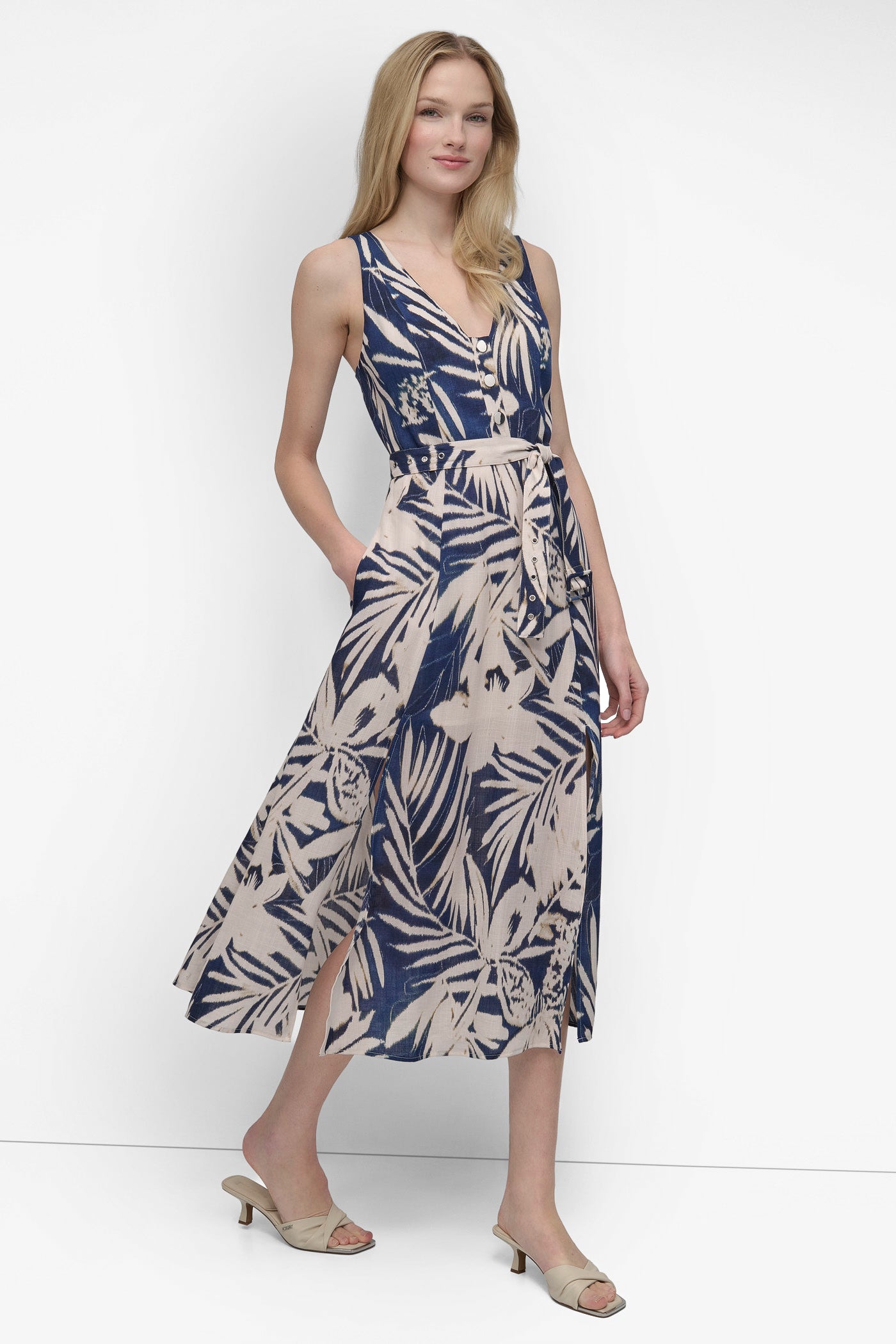 يمنحك فستان دكني ميدي بدون أكمام بتصميم أنيق وبسيط باللون الأزرق الجذاب تصميمًا جذابًا وجاذبية رائعة، ما يجعله قطعة مثالية لإطلالات النهار والمساء، ويتناسق تصميمه العصري بشكل رائع مع أحذية الكعب المرتفع أو الصنادل لتمنحك إطلالة أنيقة بأثر فوري.