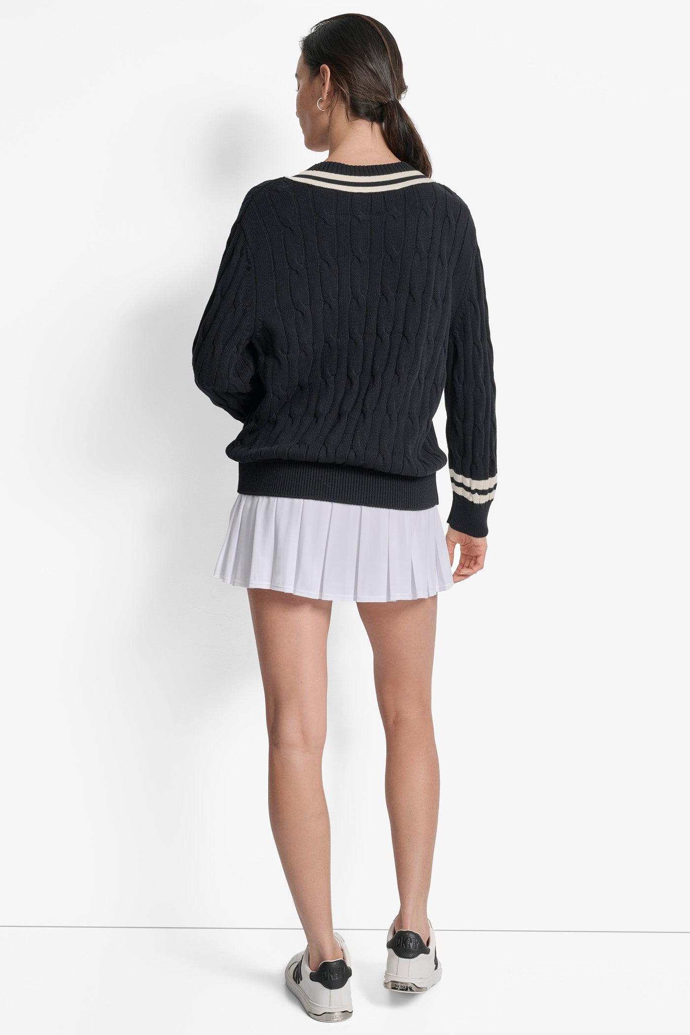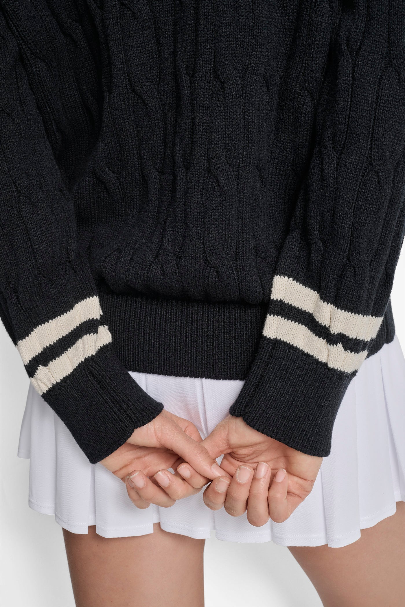 ارتقي بخزانة ملابسك مع سترة دكني كابل بأكمام طويلة باللون الأسود الكلاسيكي. يمنحك تصميمها المتقن من نسيج الكابل أناقةً لا تتأثر بمرور الزمن والشعور براحةً دافئة، مما يجعلها قطعة مثالية رائعة للارتداء فوق ملابس أخرى أو بمفردها كإطلالة مستقلة في المواسم الباردة.