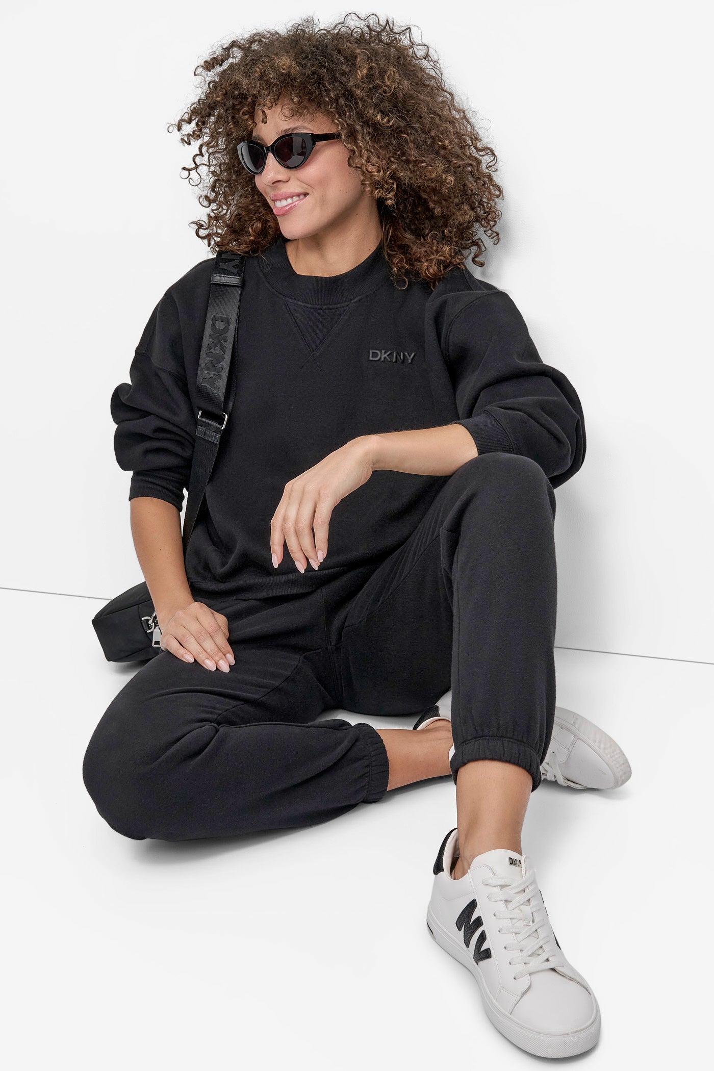 ارتقِ بإطلالتك الكاجوال مع سويت شيرت دكني بفتحة ياقة مستديرة ومزين بشعار العلامة. يتميز هذا السويت شيرت الناعم والمريح بشعار دكني الجريء على خلفية سوداء كلاسيكية، ما يجعله مثالياً للارتداء فوق ملابس أخرى أو كإطلالة مستقلة. قطعة مثالية للارتداء اليومي بلمسة عصرية.