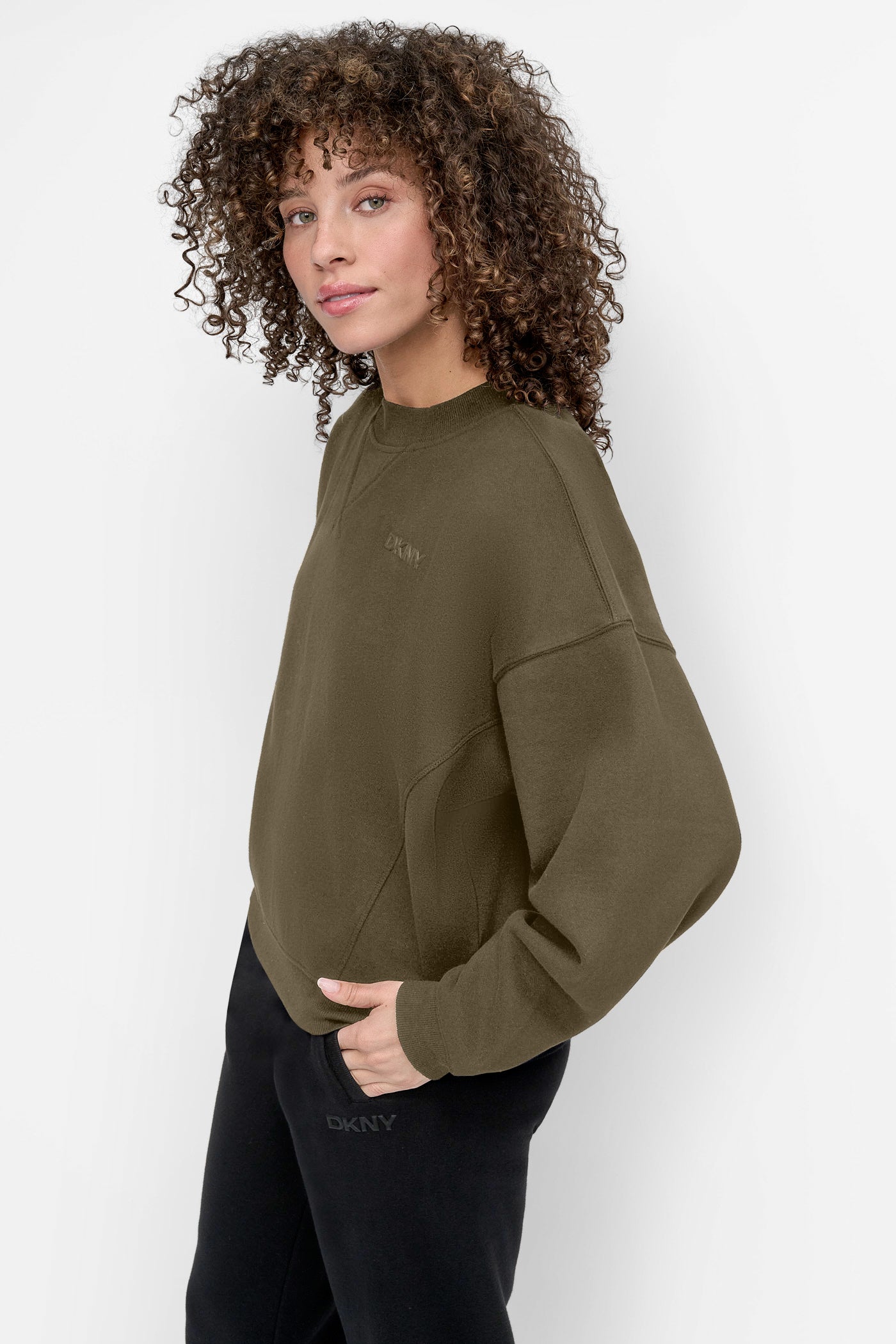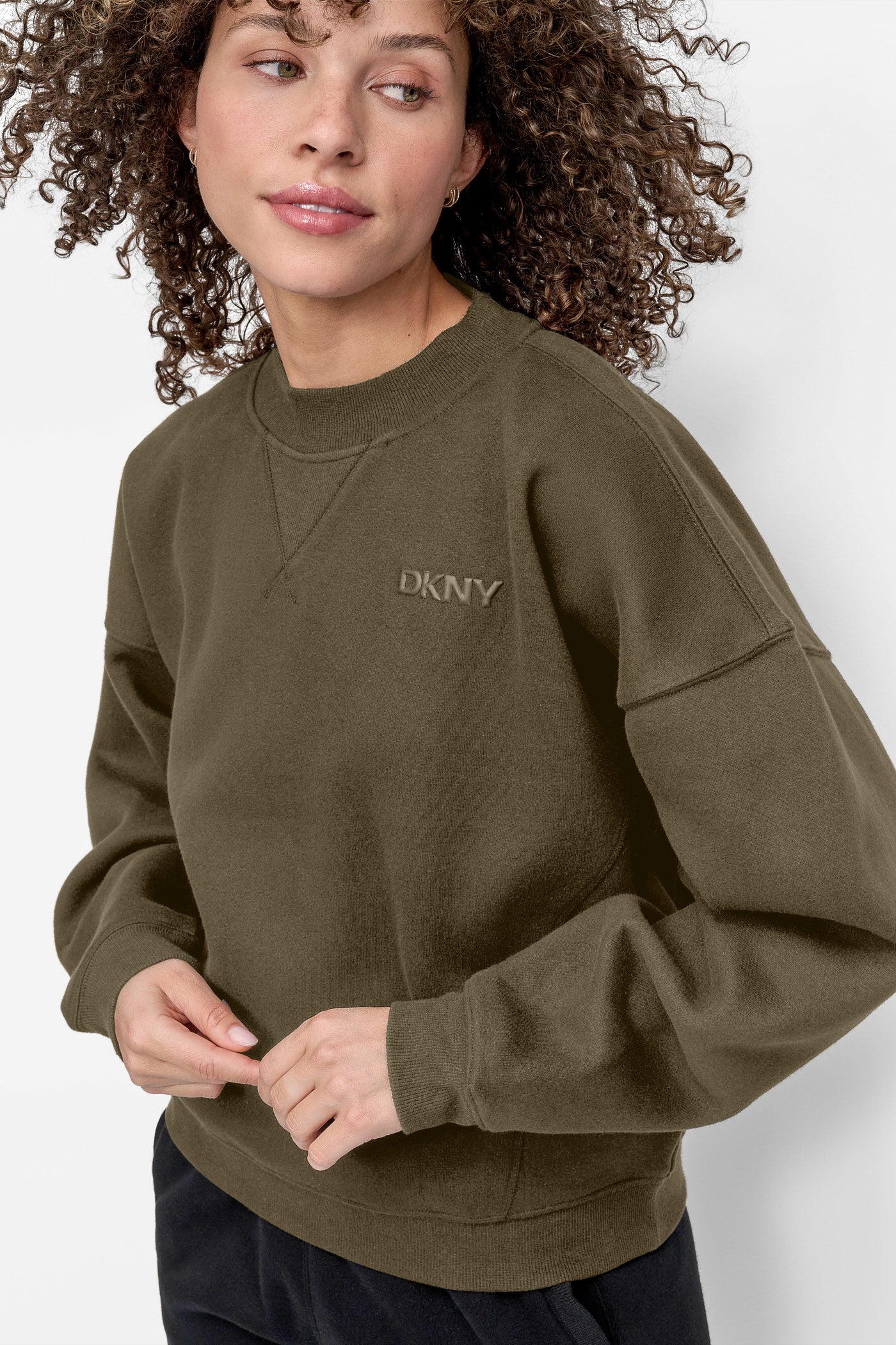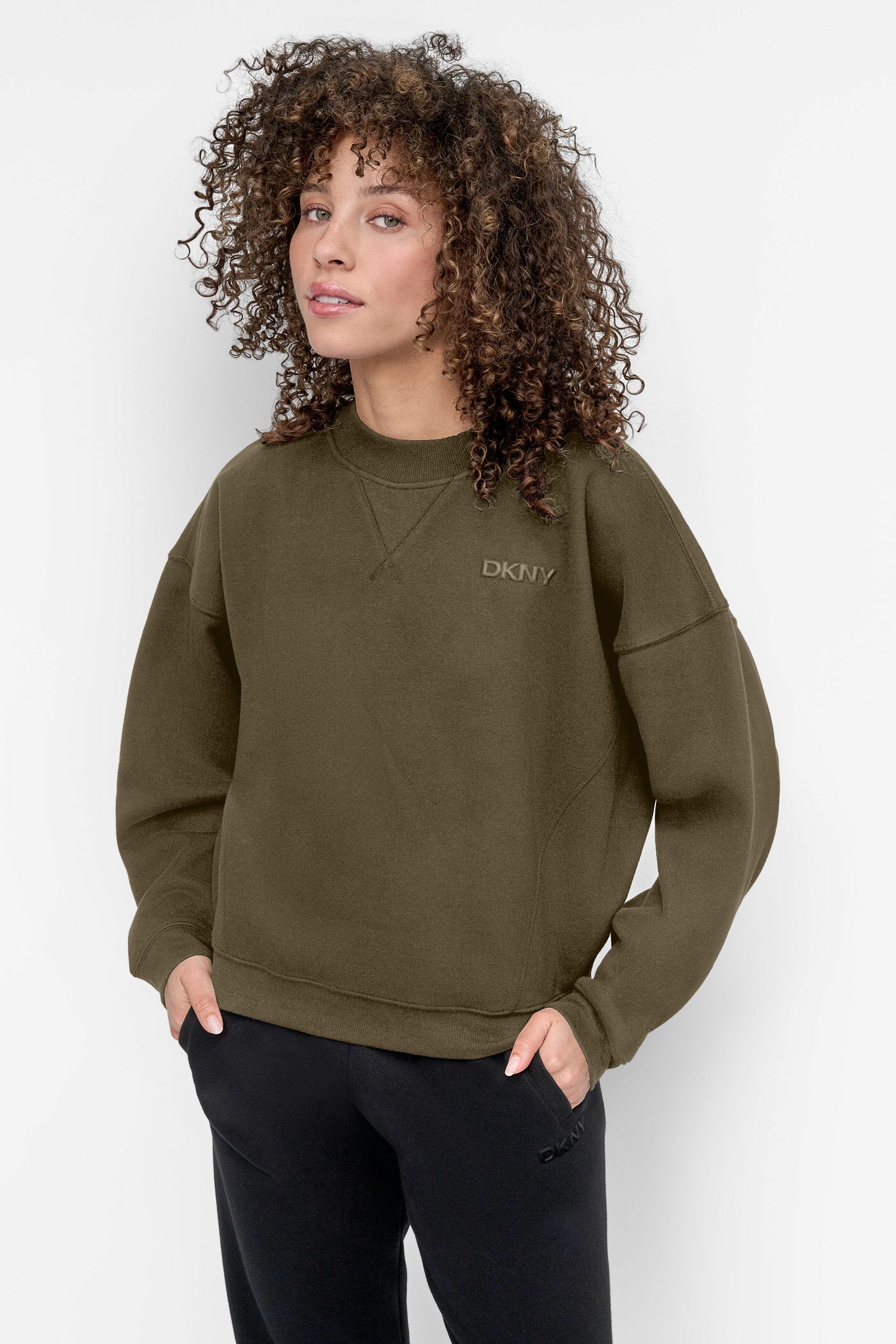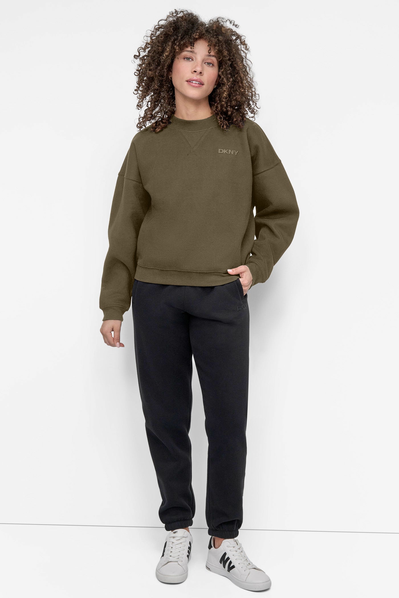 سويت شيرت بفتحة ياقة مستديرة ومزين بشعار دكني