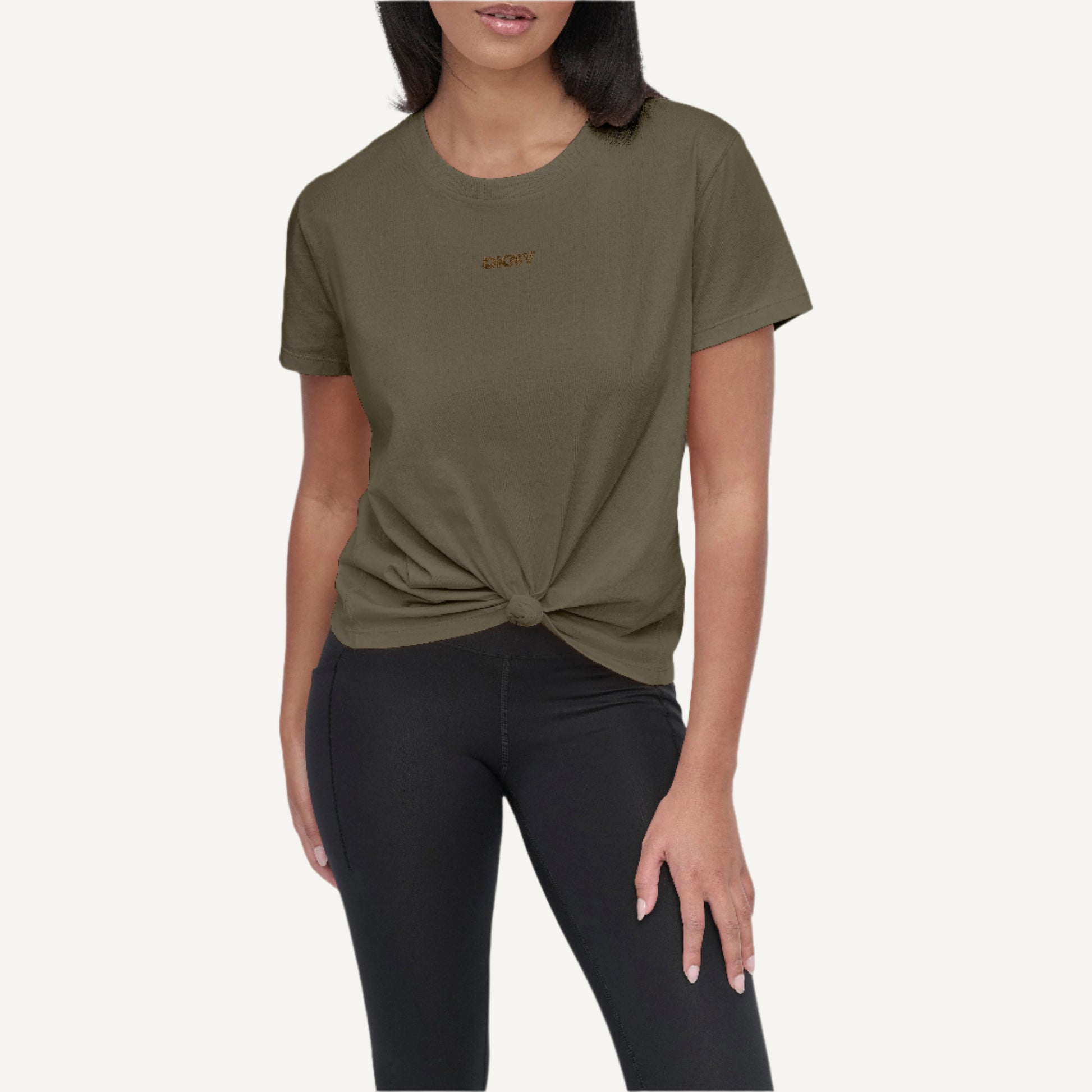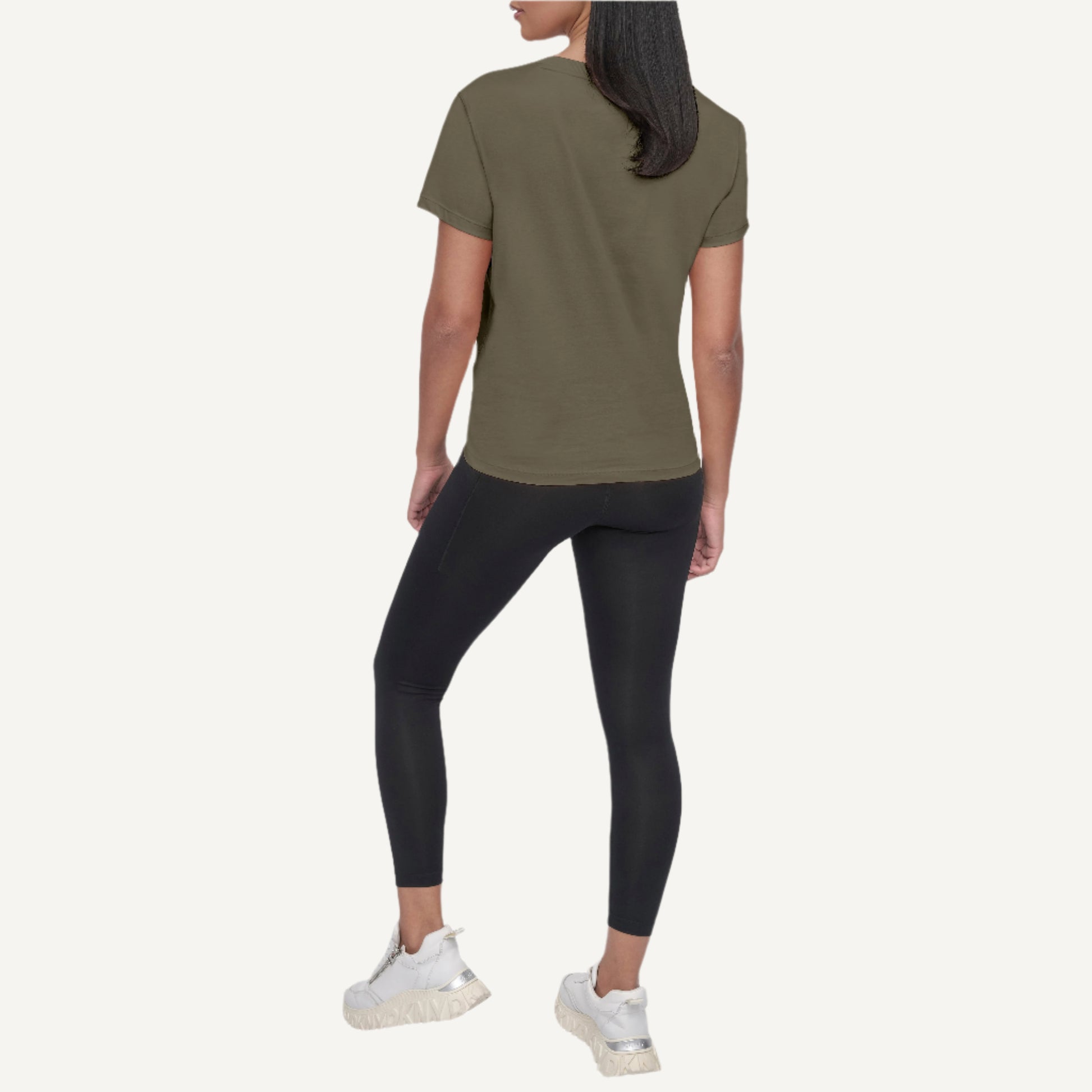 أضفي لمسة من الفخامة إلى إطلالتك الكاجوال مع تي شيرت دكني ميني بشعار مرصع باللون الأخضر النابض بالحياة. تم تصميم هذا التي شيرت الناعم ليمنحك الشعور بالراحة، ويتميز بشعار دكني الأيقوني بأزرار صغيرة جذابة، ما يجعله مثالياً للأناقة اليومية وسهولة تنسيقه مع ملابس أخرى.