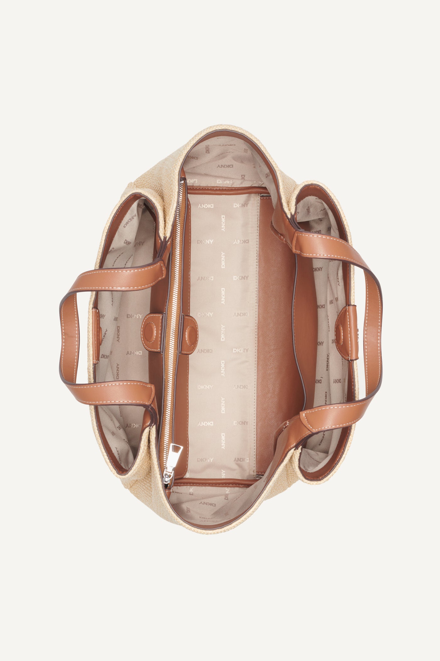 ارتقِ بإطلالتكِ اليومية مع حقيبة توت DKNY ويلا باللون البني الأنيق. هذه الحقيبة الواسعة مصنوعة من مزيج متين من البولي بروبيلين والبوليستر مع حواف أنيقة من البولي يوريثان، وتجمع بسلاسة بين العملية والأناقة، مما يجعلها مثالية لحمل أغراضكِ الأساسية بأسلوب عصري.
