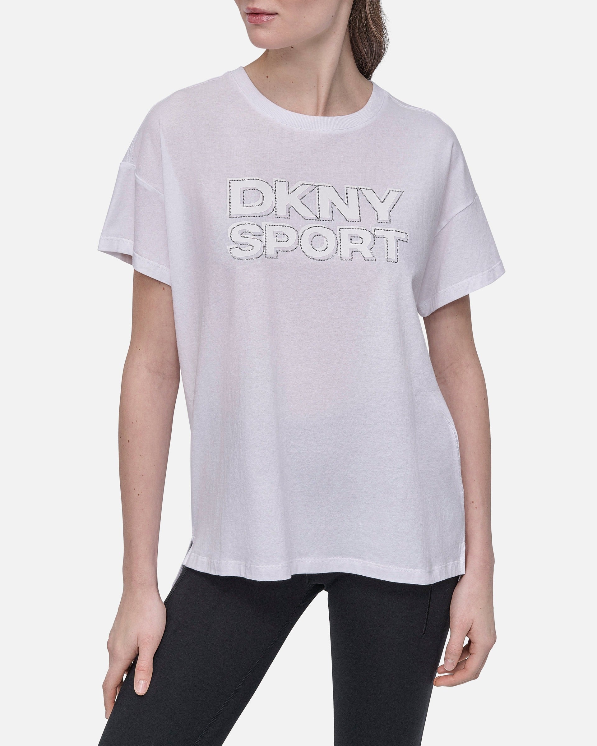 تي شيرت بأكمام قصيرة مزين بأحجار الراين