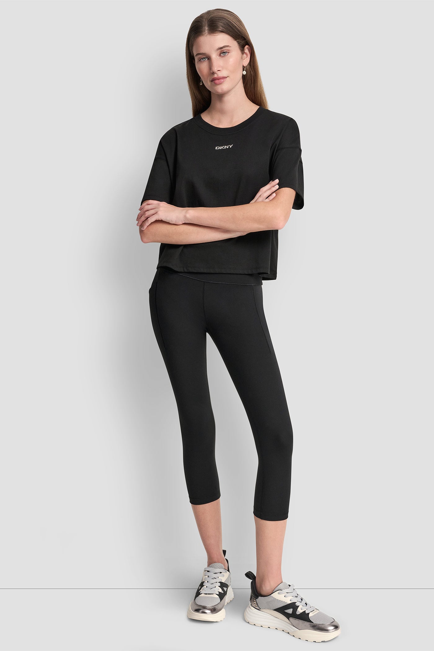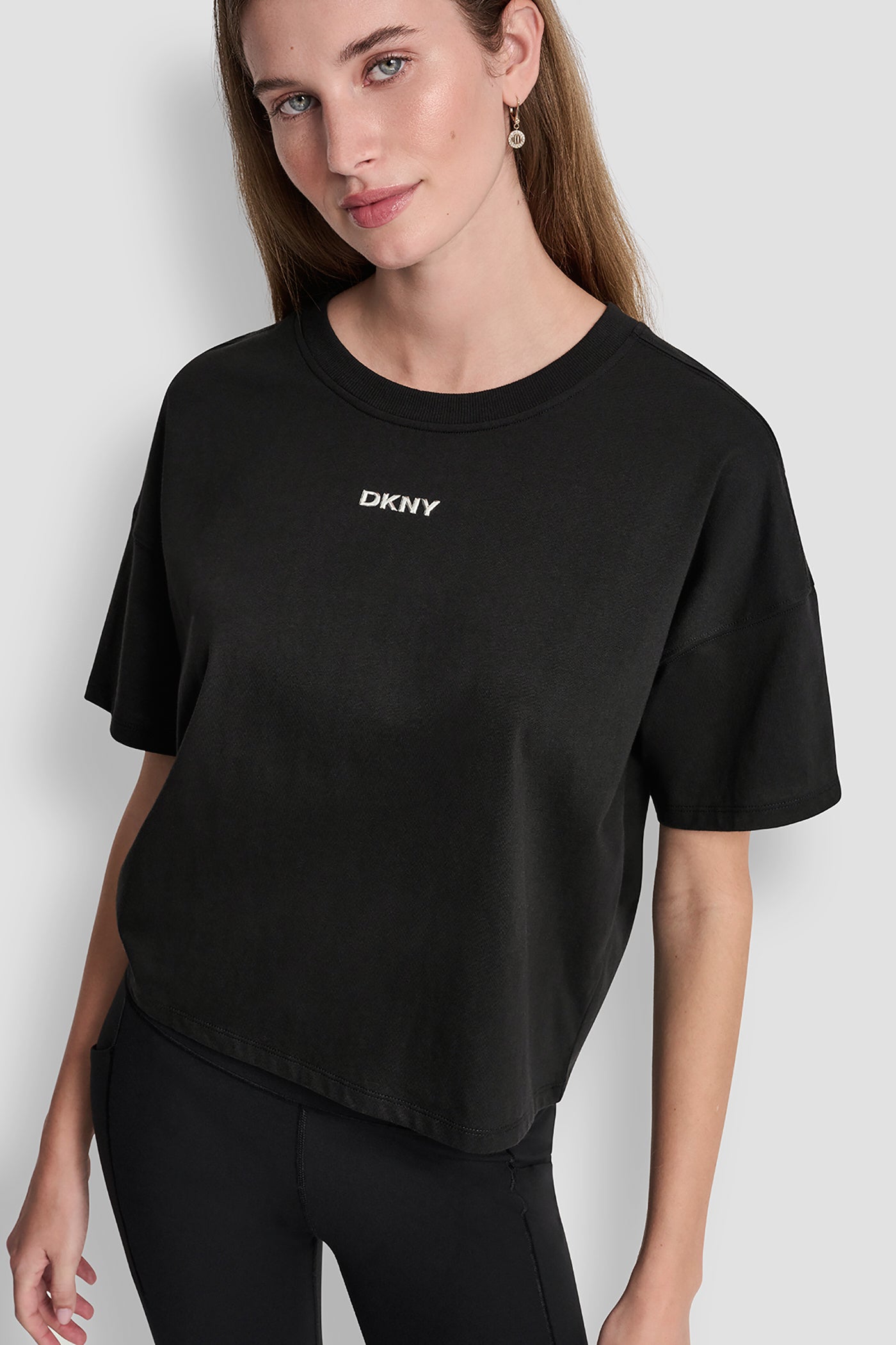 ارتقِ بمستوى أناقة إطلالتكِ اليومية مع بلوزة DKNY بشعار بارز بلمسة معدنية باللون الأسود الكلاسيكي. صُنعت هذه البلوزة بالكامل من القطن بنسبة 100% لتمنحكِ الراحة والتميز، وتزدان بشعار DKNY بارز بلمسة معدنية جذابة، وتأتي بتصميم أنيق يناسب الإطلالات اليومية، كما يمكنكِ تنسيقها مع طبقات أخرى لمظهر عصري يواكب الموضة.