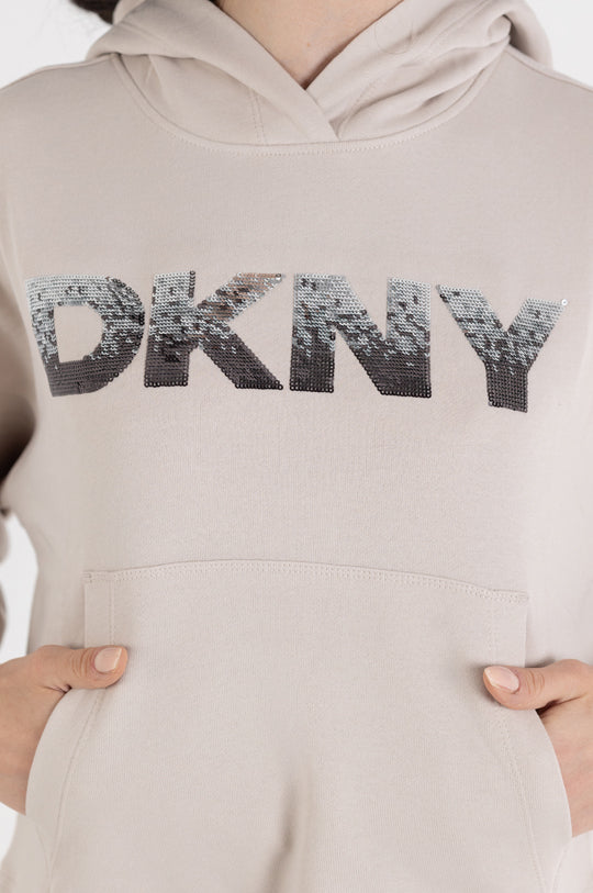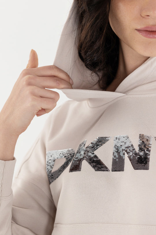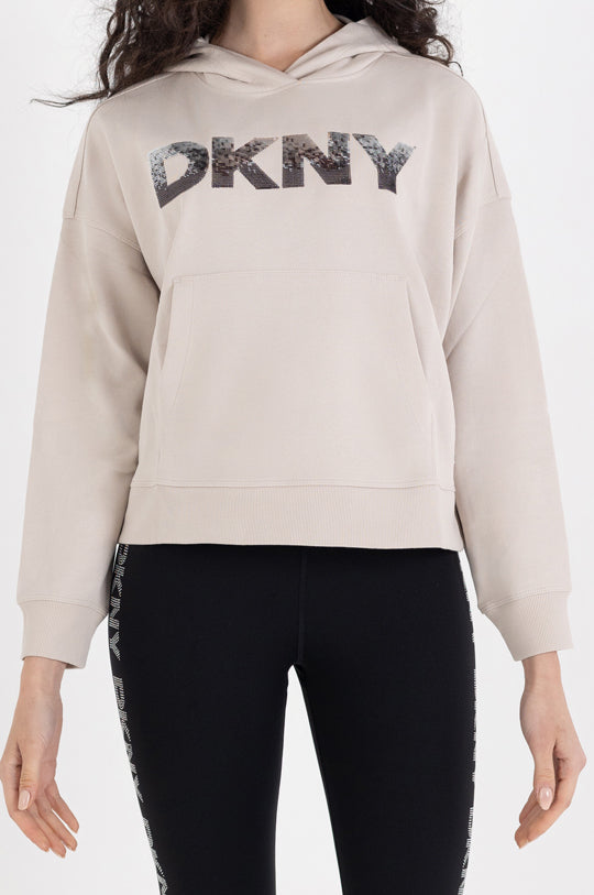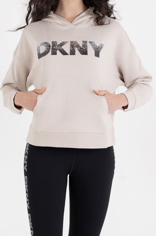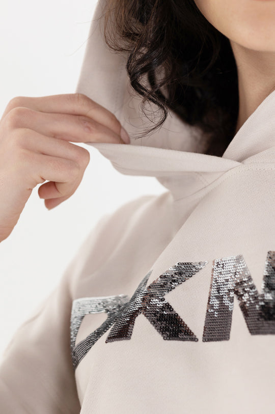 تألقي بالأناقة مع سترة هودي أومبير مع شعار الماركة المزين بالترتر من دكني. تتميز سترة هودي أومبير باللون الأبيض بشعار مزين بالترتر الجذاب وجيب الكنغر العملي، حيث تمزج دون عناء بين الجاذبية الرياضية والأناقة الراقية. قطعة مثالية للارتقاء بأناقة خزانة ملابسك لخريف 2024.
