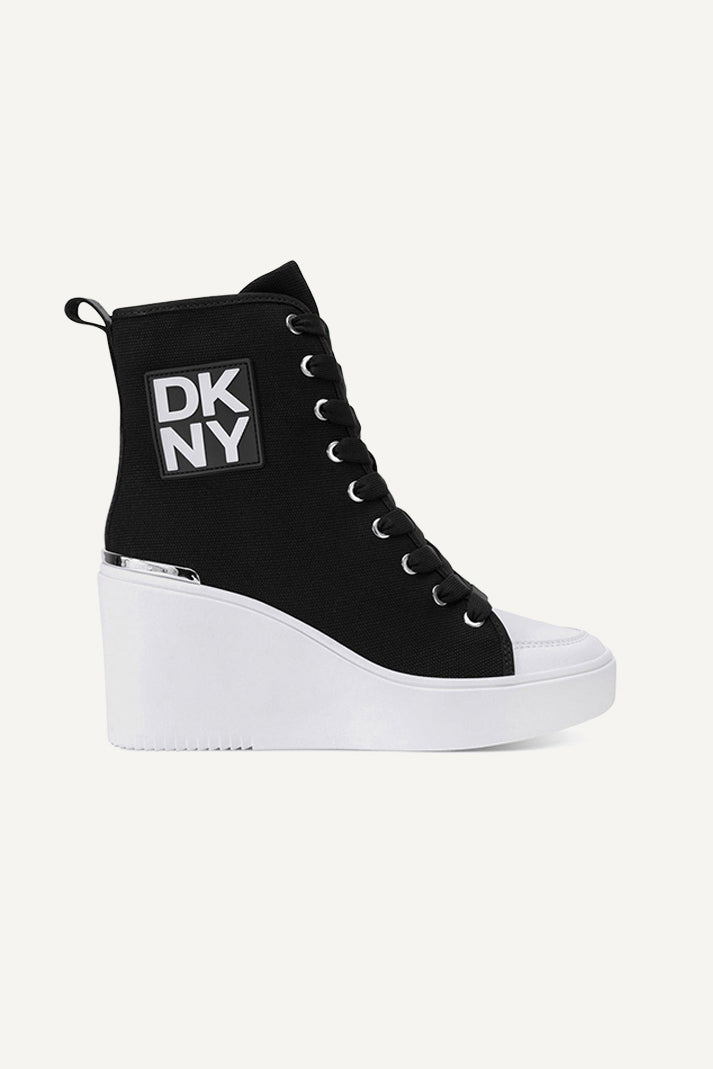 استمتع بأقصى درجات الراحة والأناقة مع حذاء DKNY BAX Wedge الرياضي باللون الأسود الكلاسيكي. يمزج هذا الحذاء ببراعة بين التصميم الرياضي والكعب الأنيق، ليُضفي لمسةً أنيقةً على أي إطلالة، ويوفر راحةً طوال اليوم مع الحفاظ على مظهر أنيق وعصري لعشاق الموضة.