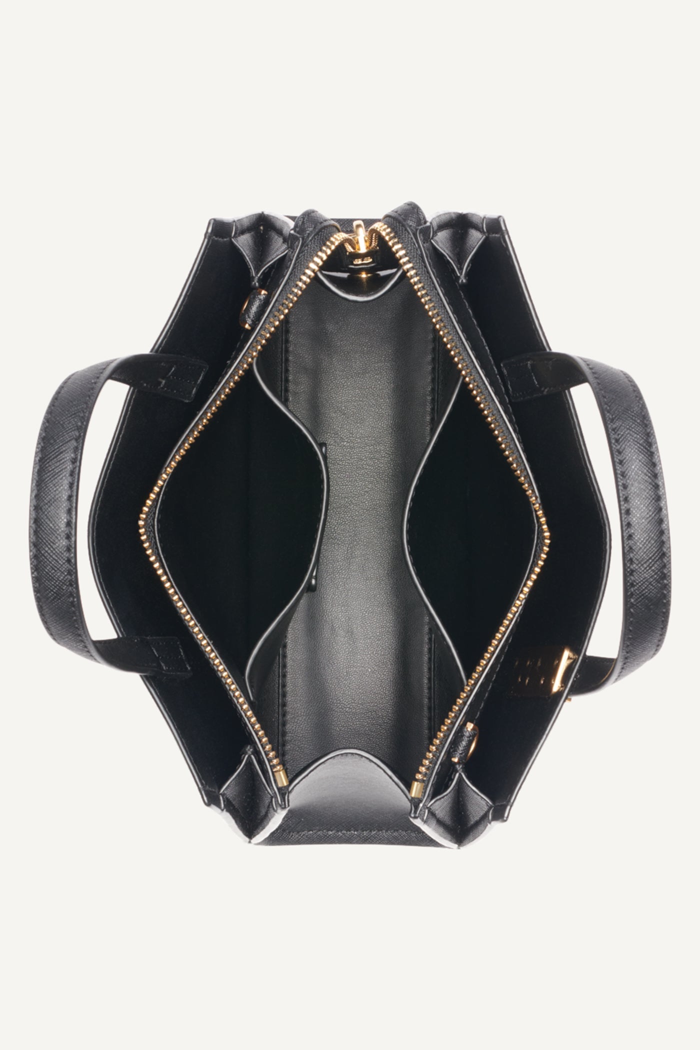 ارتقِ بأناقتك مع حقيبة صغيرة الحجم ذات الحزام المتقاطع من دكني المصنوعة من اللون الأسود الذي لا يتأثر بمرور الزمن. تتميز هذه الحقيبة بتصميم أنيق ومادة متينة وحزام كتف رائع، حيث تمزج بسلاسة بين التطبيق العملي والأناقة الراقية في أي مناسبة.