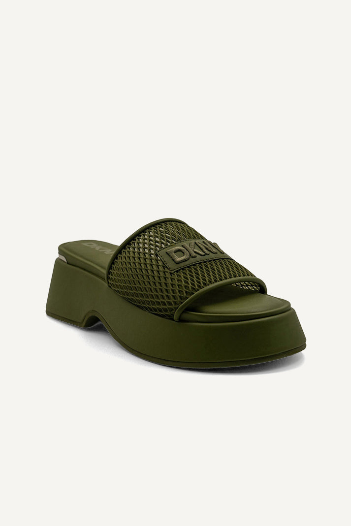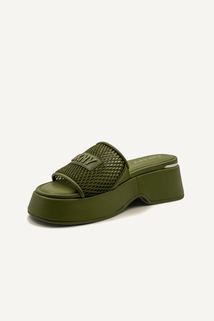 Elevate your style with DKNY's Iredell Platform Slide in vibrant green. These chic shoes blend comfort and sophistication, featuring a sleek design and plush platform sole. Perfect for any occasion, they effortlessly complement your wardrobe, ensuring you stand out.