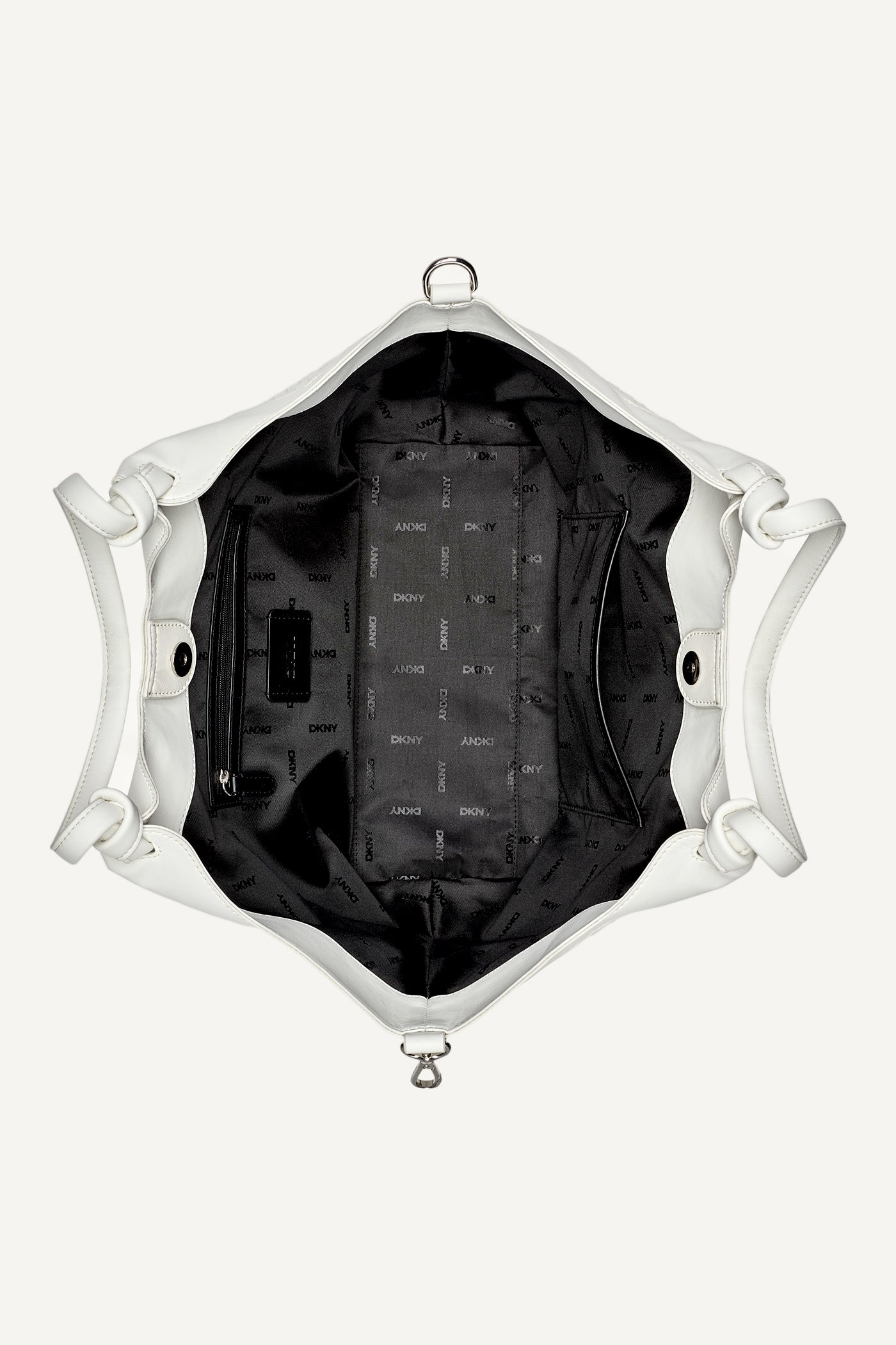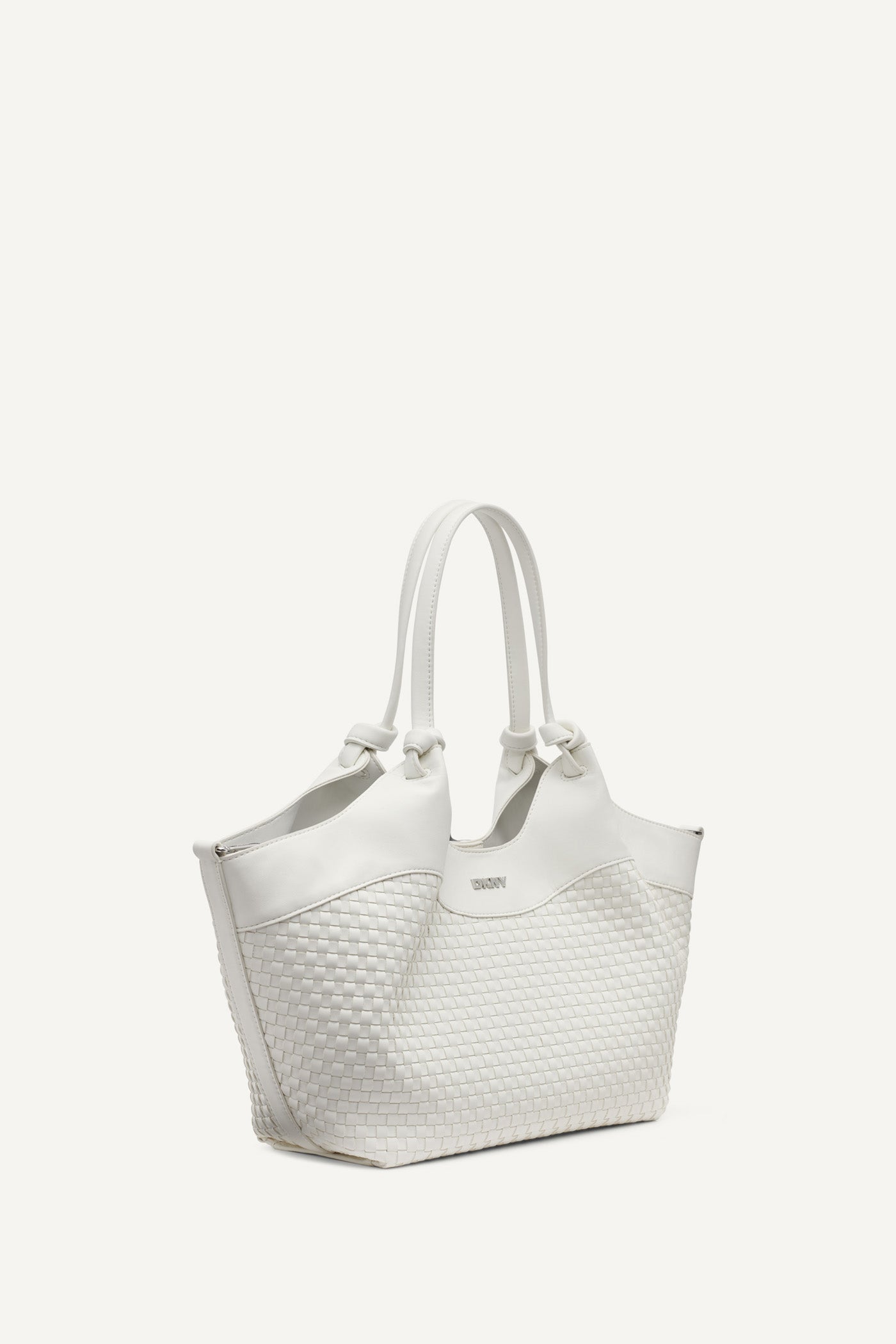 Elevate your everyday look with the DKNY Paula Medium Tote in classic white. This spacious, structured tote features sleek lines, dual handles, and a roomy interior-perfect for work or weekend. Versatile sophistication meets practical design in this must-have accessory.