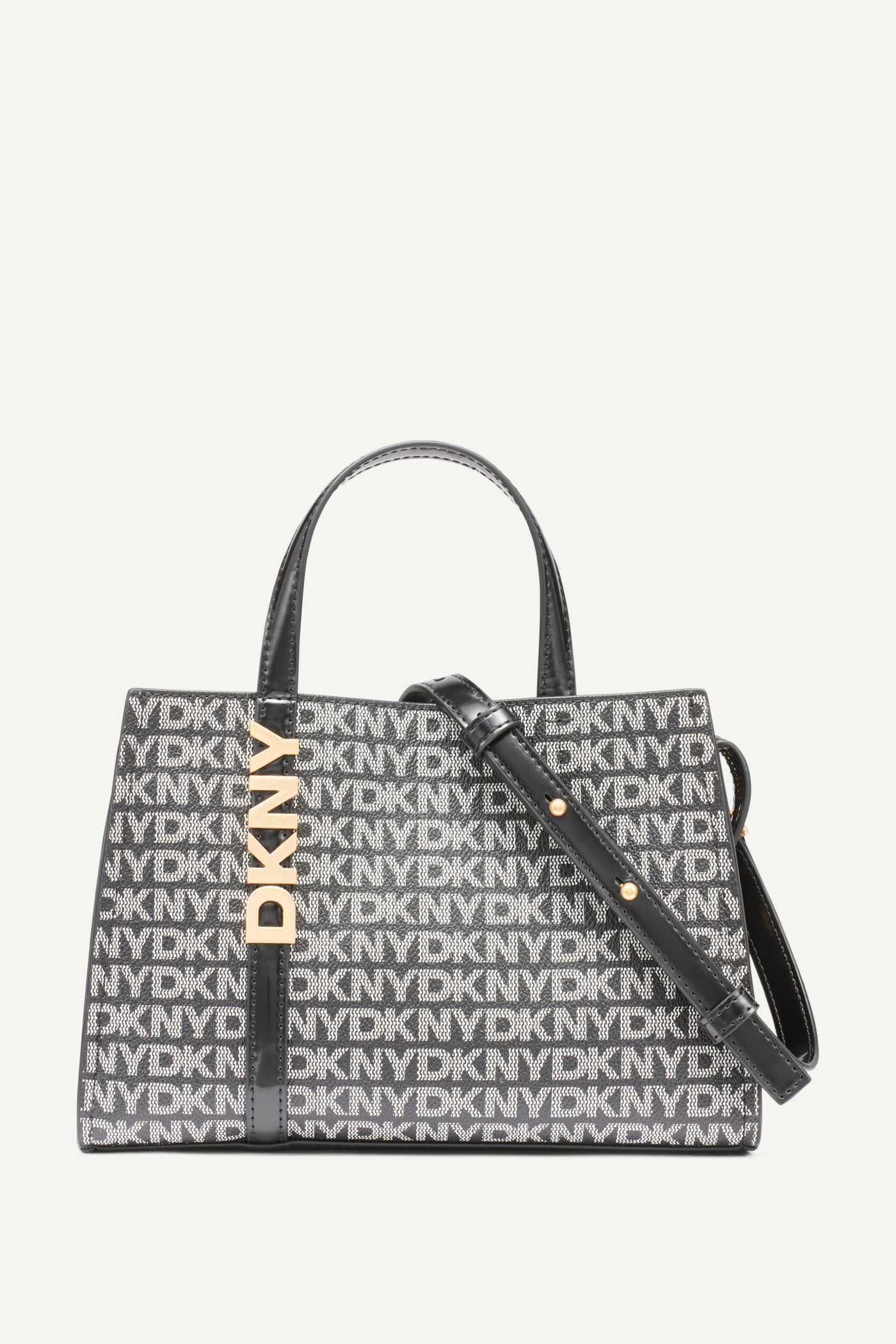 Sleek and versatile, the DKNY AVRIL Small Satchel Crossbody in classic black elevates any look. Its structured silhouette, subtle branding, and adjustable strap offer style and practicality, making it the ideal companion for day-to-night sophistication and hands-free convenience.