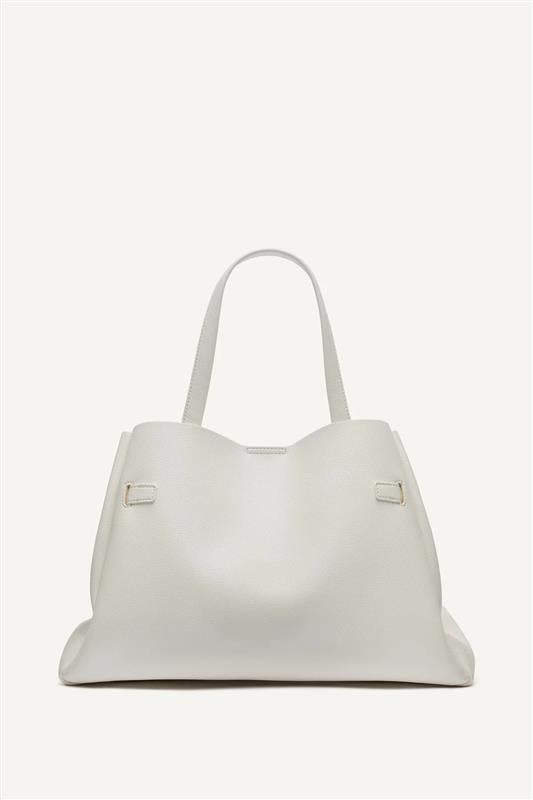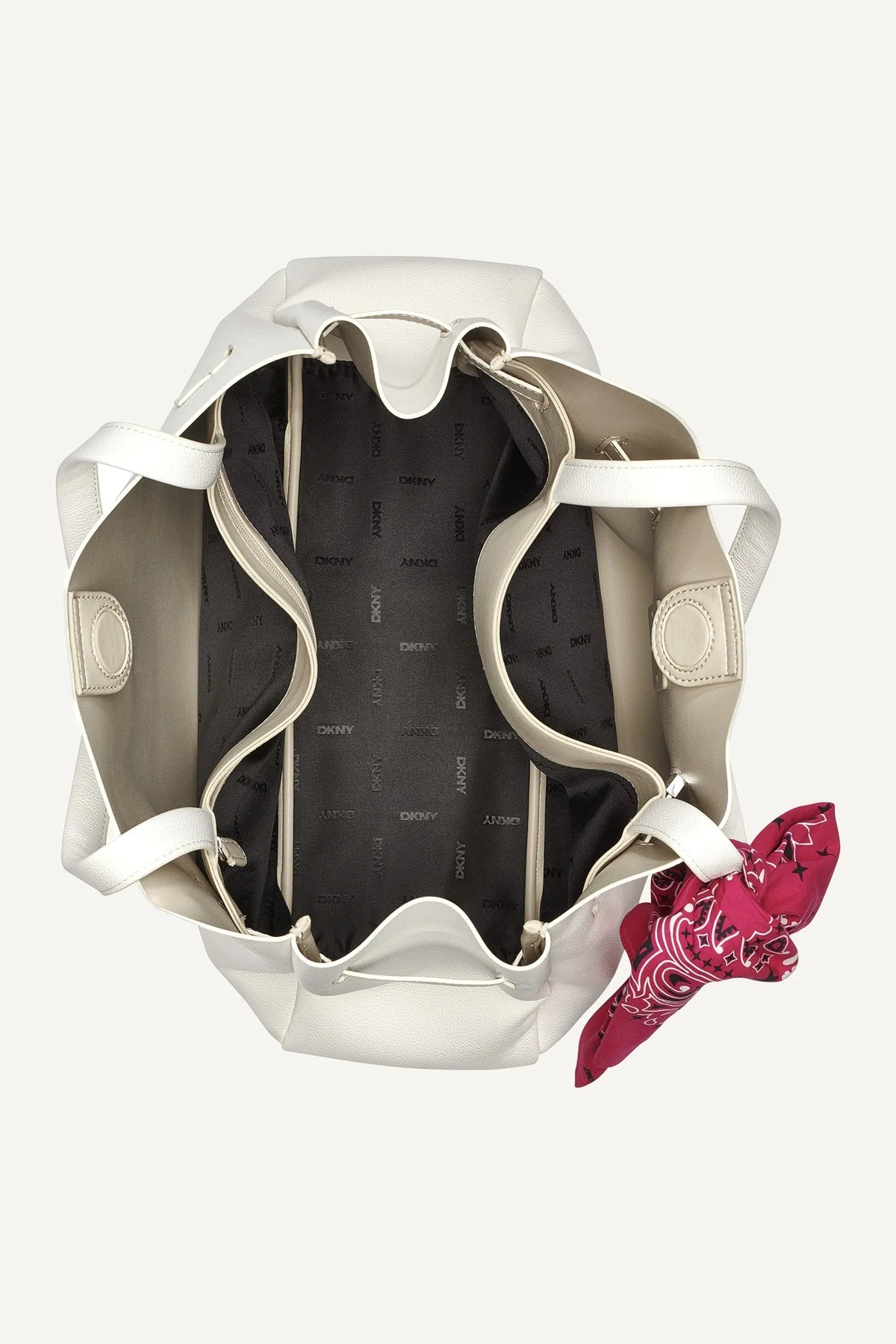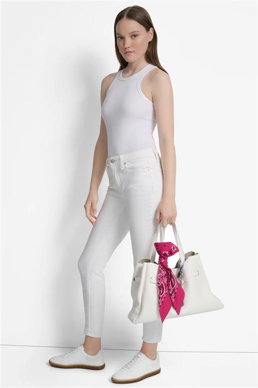 Elevate your style with the DKNY Bryar Large Satchel in elegant white. This spacious top handle bag features playful, eye-catching charms, durable construction, and refined detailing, making it the perfect sophisticated accessory for both everyday wear and special occasions.
