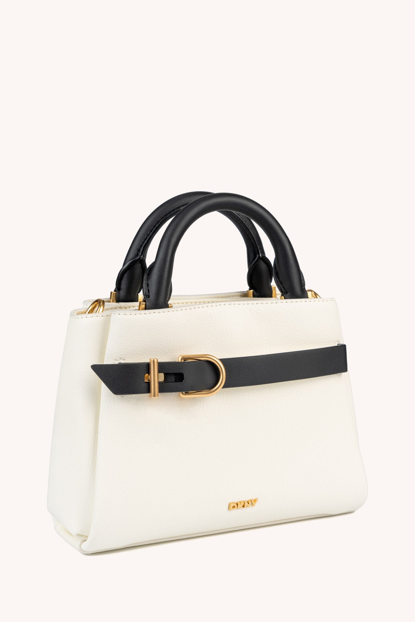 Elevate your everyday style with the DKNY ONYX Small Satchel Crossbody in classic white. This chic and compact crossbody bag features sleek gold-tone hardware, an adjustable strap, and multiple compartments-perfect for keeping essentials organized and hands-free on the go.