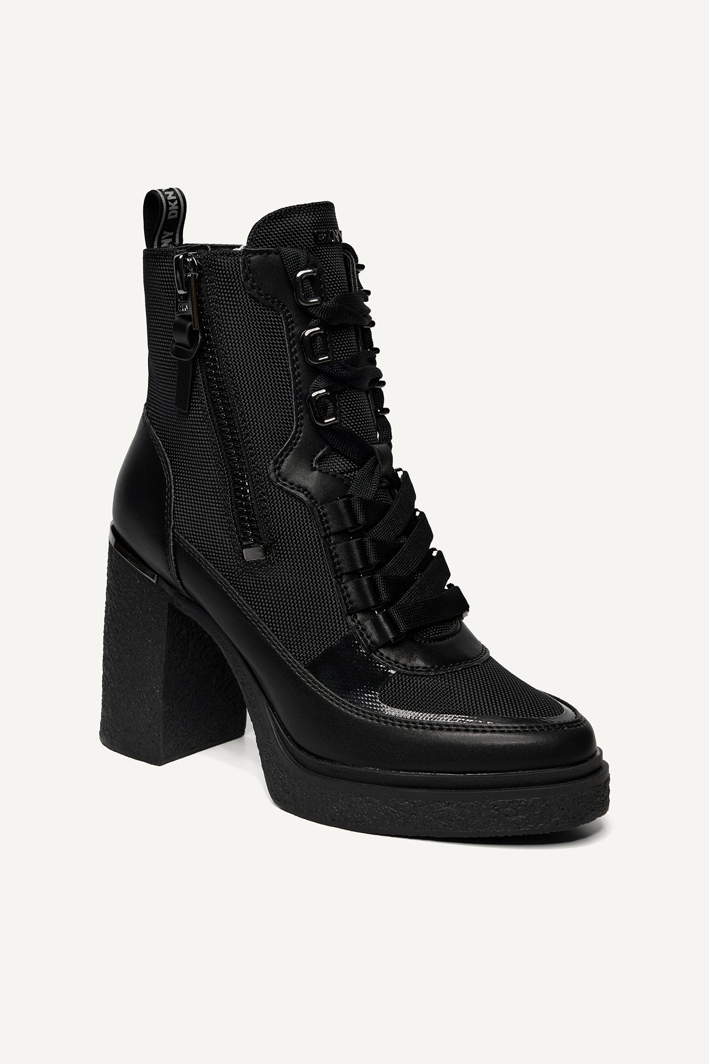 Step up your style with the TOIA WIDE Lace Up Boots from DKNY in classic black. These versatile boots feature a comfortable wide fit, sturdy lace-up design, and premium materials perfect for effortlessly elevating your everyday looks or urban ensembles.