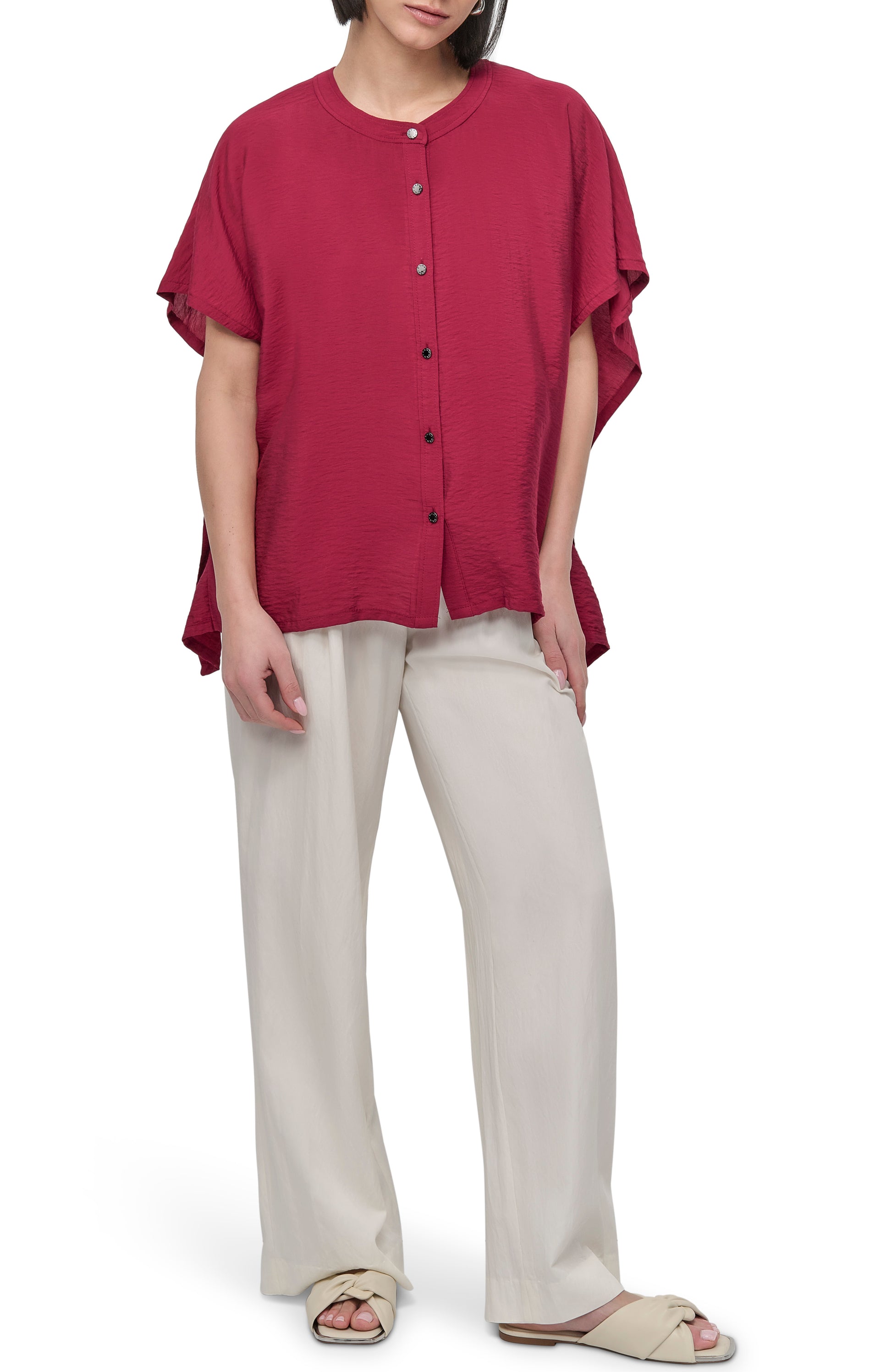 Add a breezy touch to your wardrobe with this DKNY Flowy Rumpled Voile Shirt in vibrant purple. Lightweight and effortlessly chic, its textured finish and relaxed fit make it perfect for layering, offering style and comfort for any occasion.