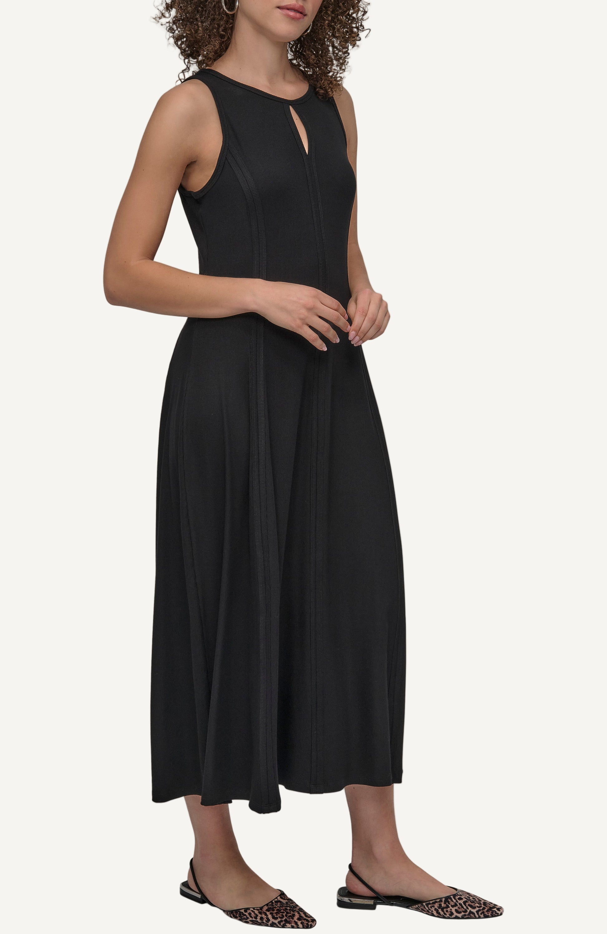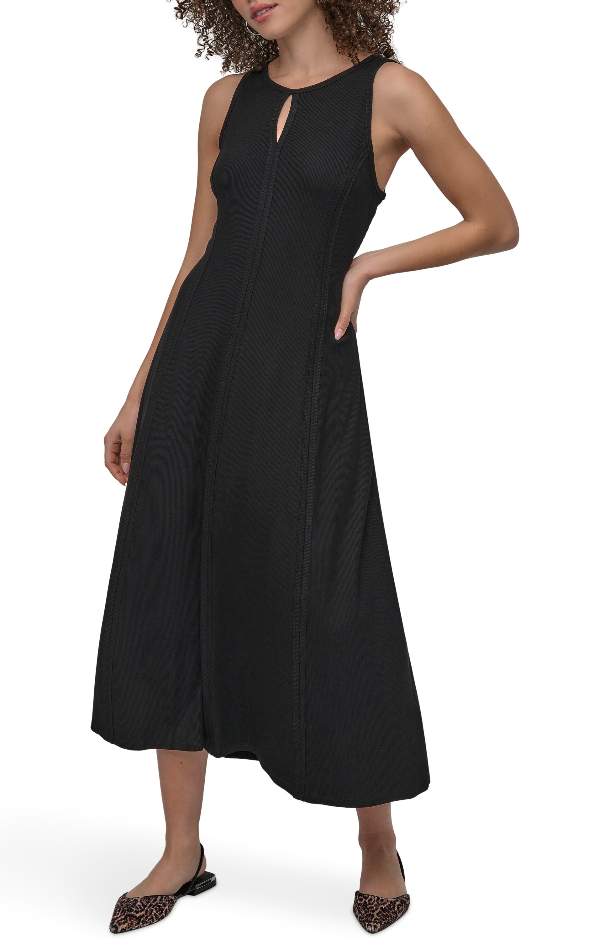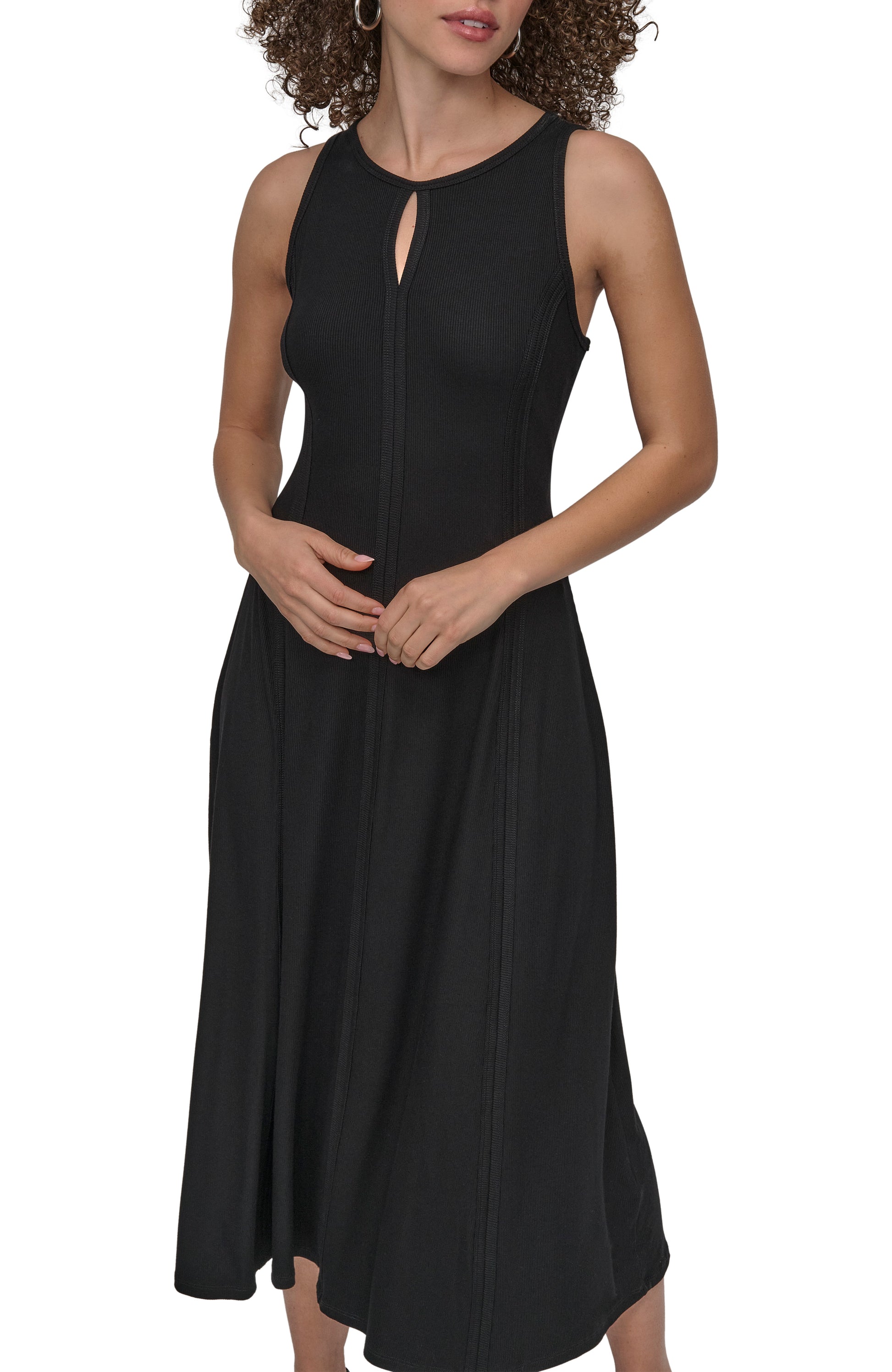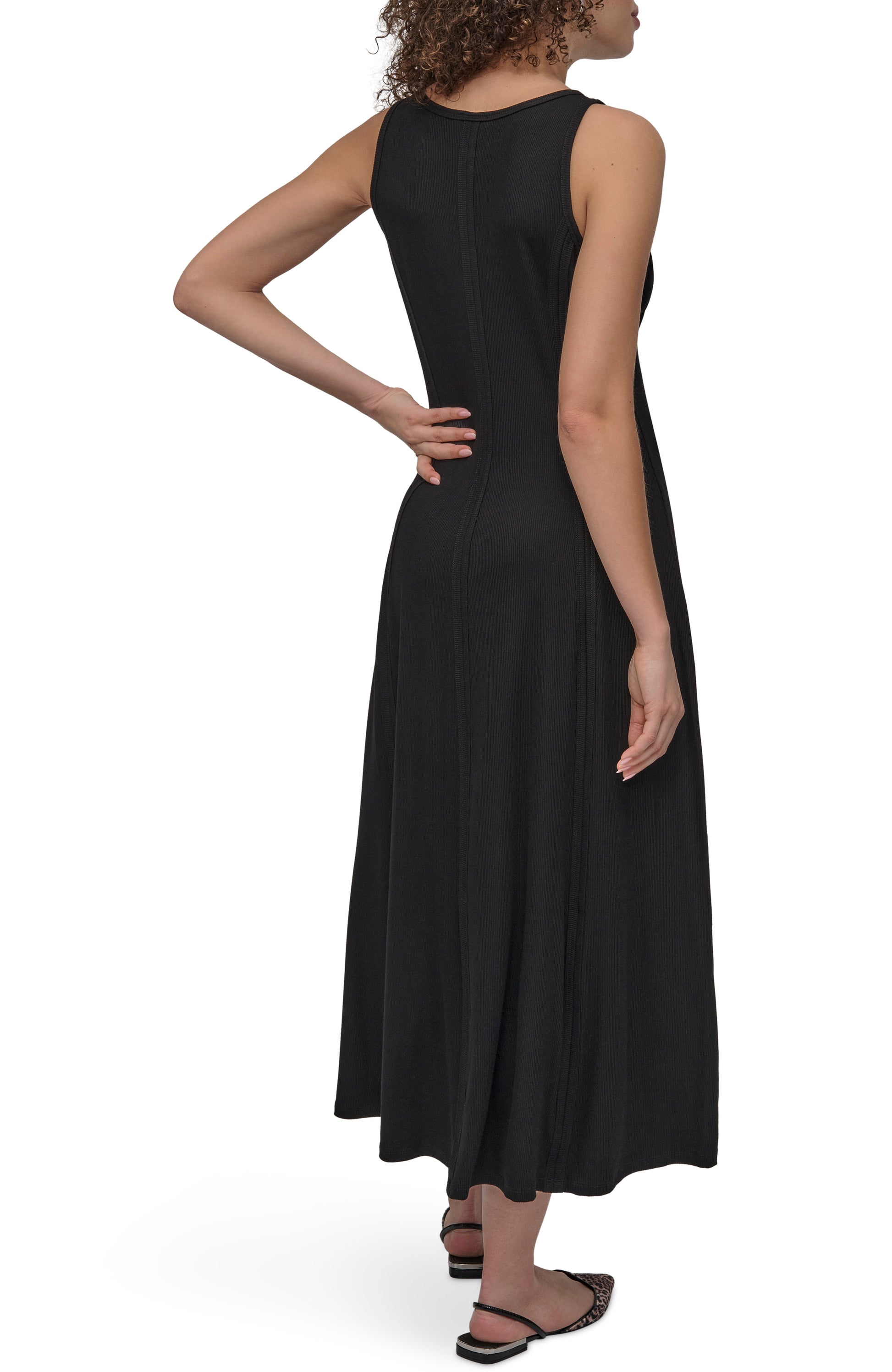 Elevate your wardrobe with the DKNY MAXI 2X2 Rib Dress in classic black. This sleek maxi dress features a figure-flattering ribbed knit, offering both comfort and sophistication. Perfect for day-to-night versatility, it's a timeless staple for any occasion.