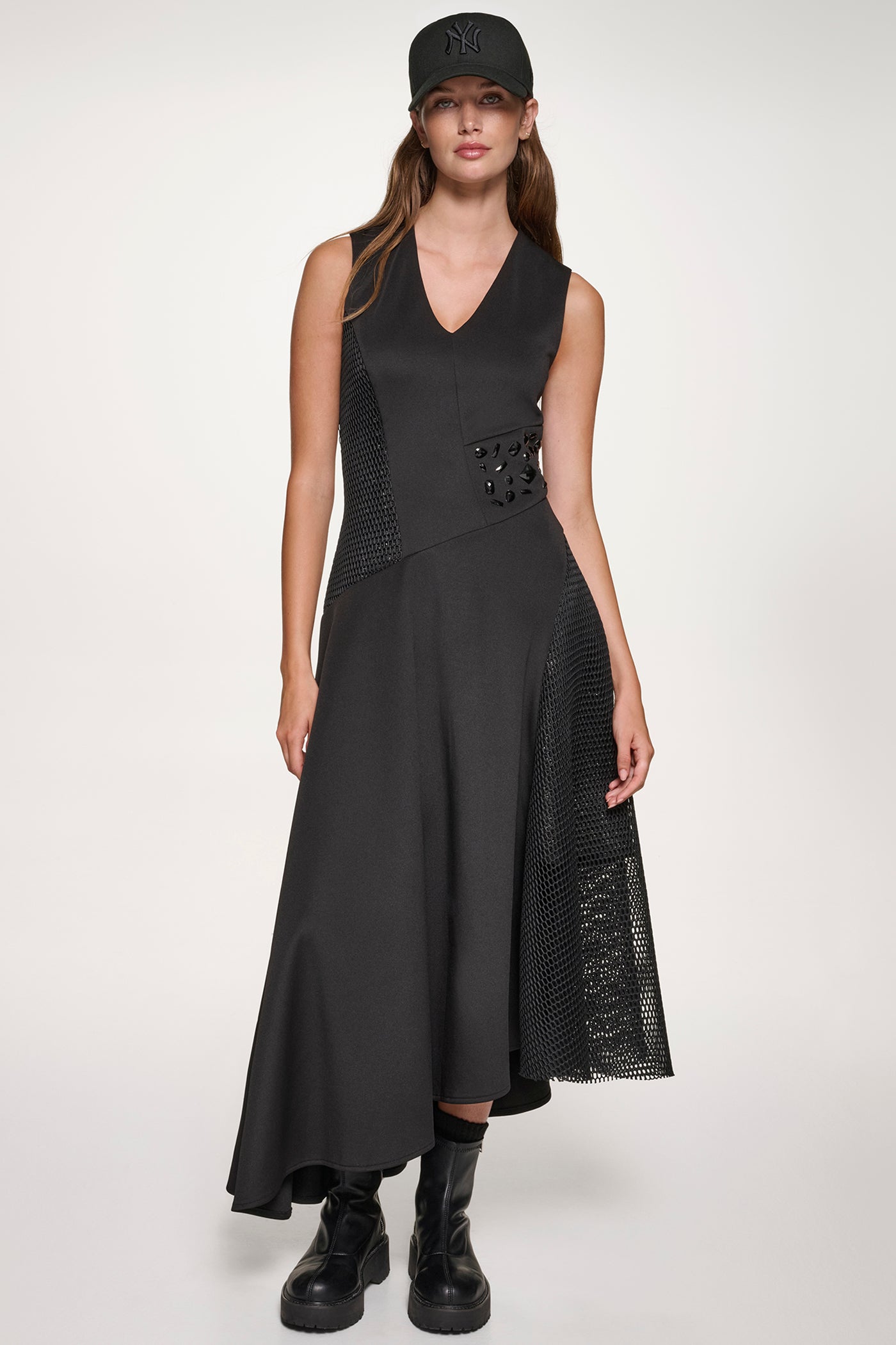 SLEEVELESS MIX MEDIA PANEL DRESS