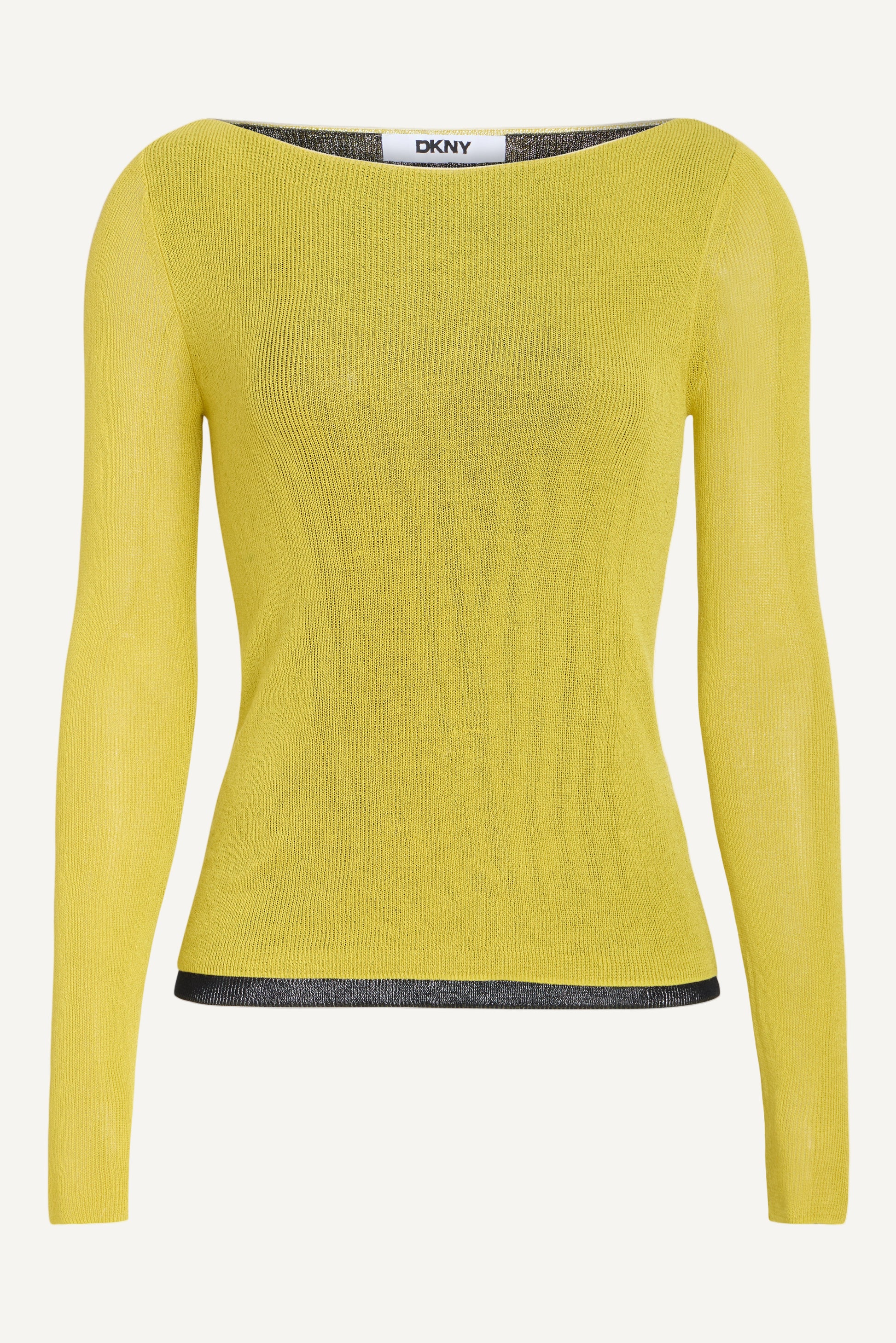 Experience effortless sophistication with the DKNY Long Sleeve Double Layer Top in classic yellow. Featuring a modern layered design and soft, lightweight fabric, this versatile piece transitions seamlessly from work to evening, elevating your everyday style with timeless elegance.