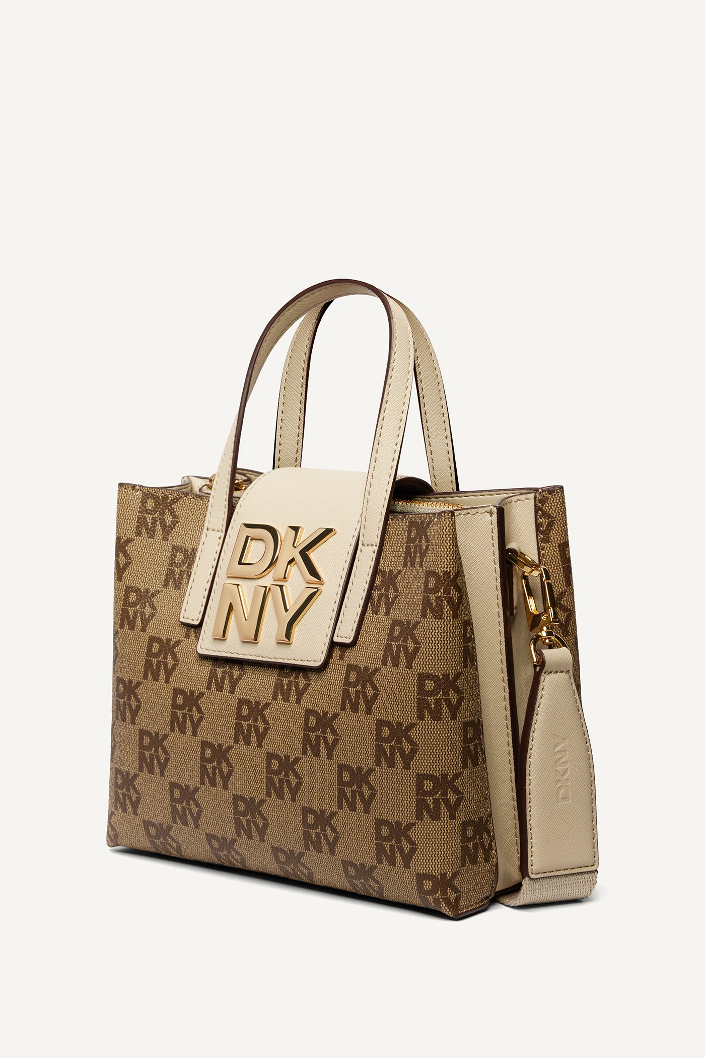 Elevate your style with the DKNY FAYE Small Satchel in elegant beige. This sophisticated top handle bag features a structured silhouette, polished hardware, and a versatile design-perfect for carrying daily essentials while complementing both casual and dressy ensembles.