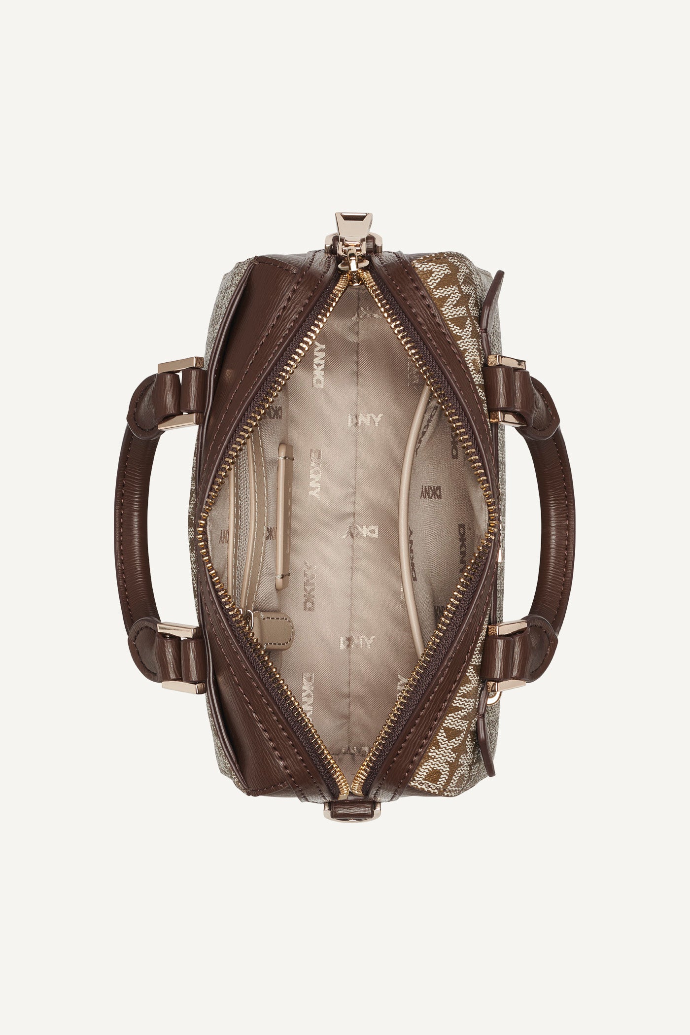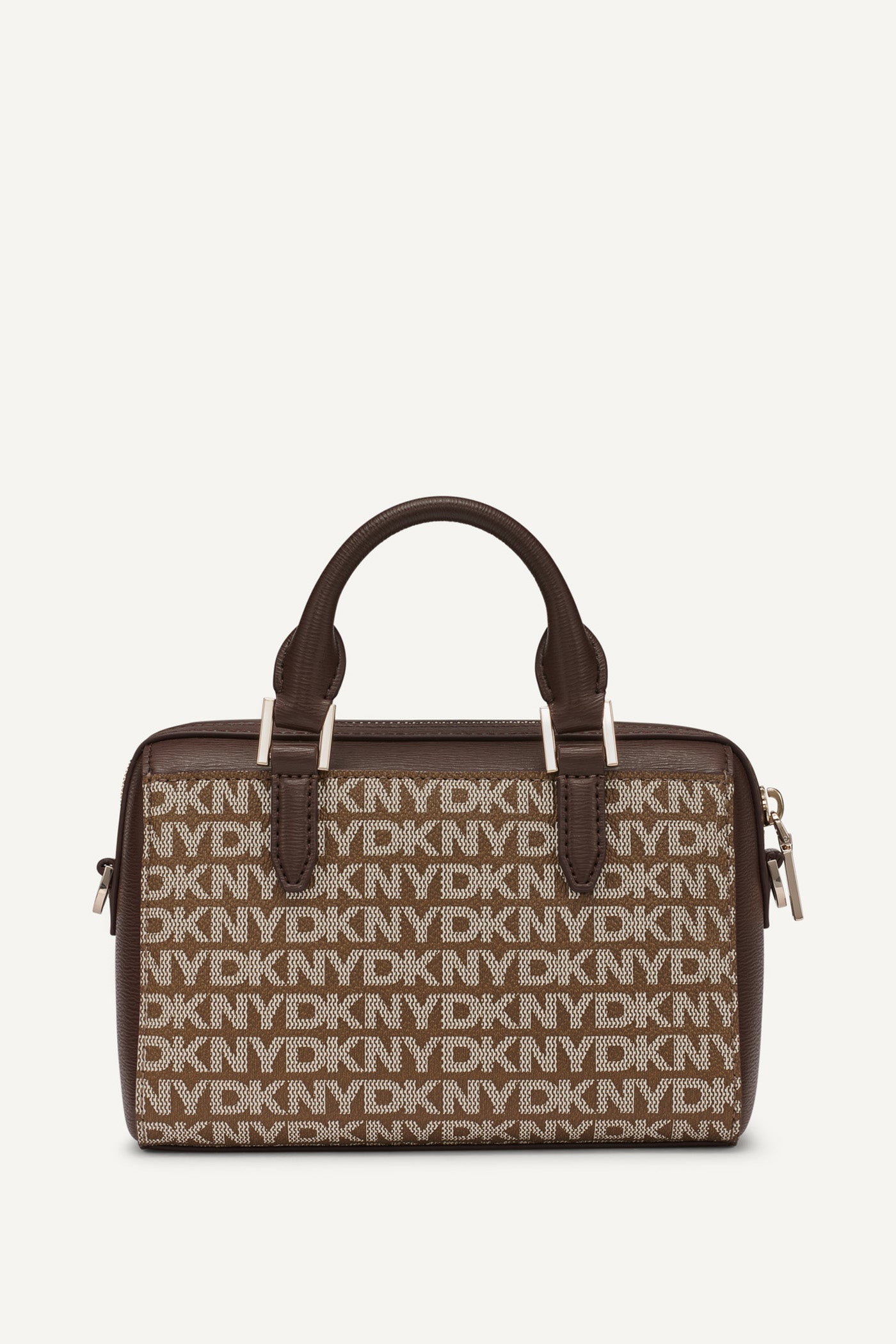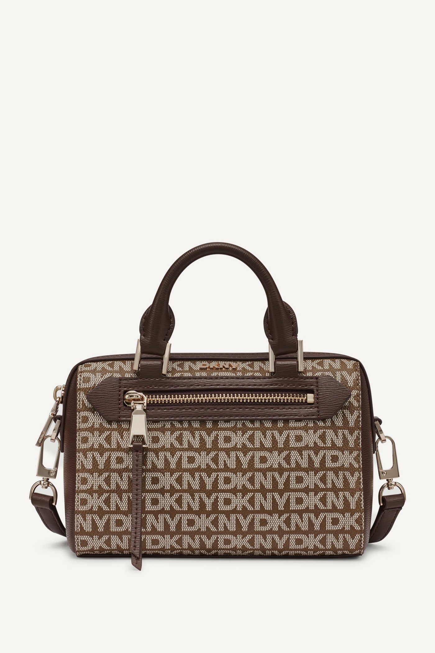The DKNY Bryant Ave Small Duffle Bag in brown exudes sophistication with its sleek design and versatile functionality. Ideal for daily use, it boasts ample space and stylish detailing, making it a perfect accessory for both casual and formal occasions.