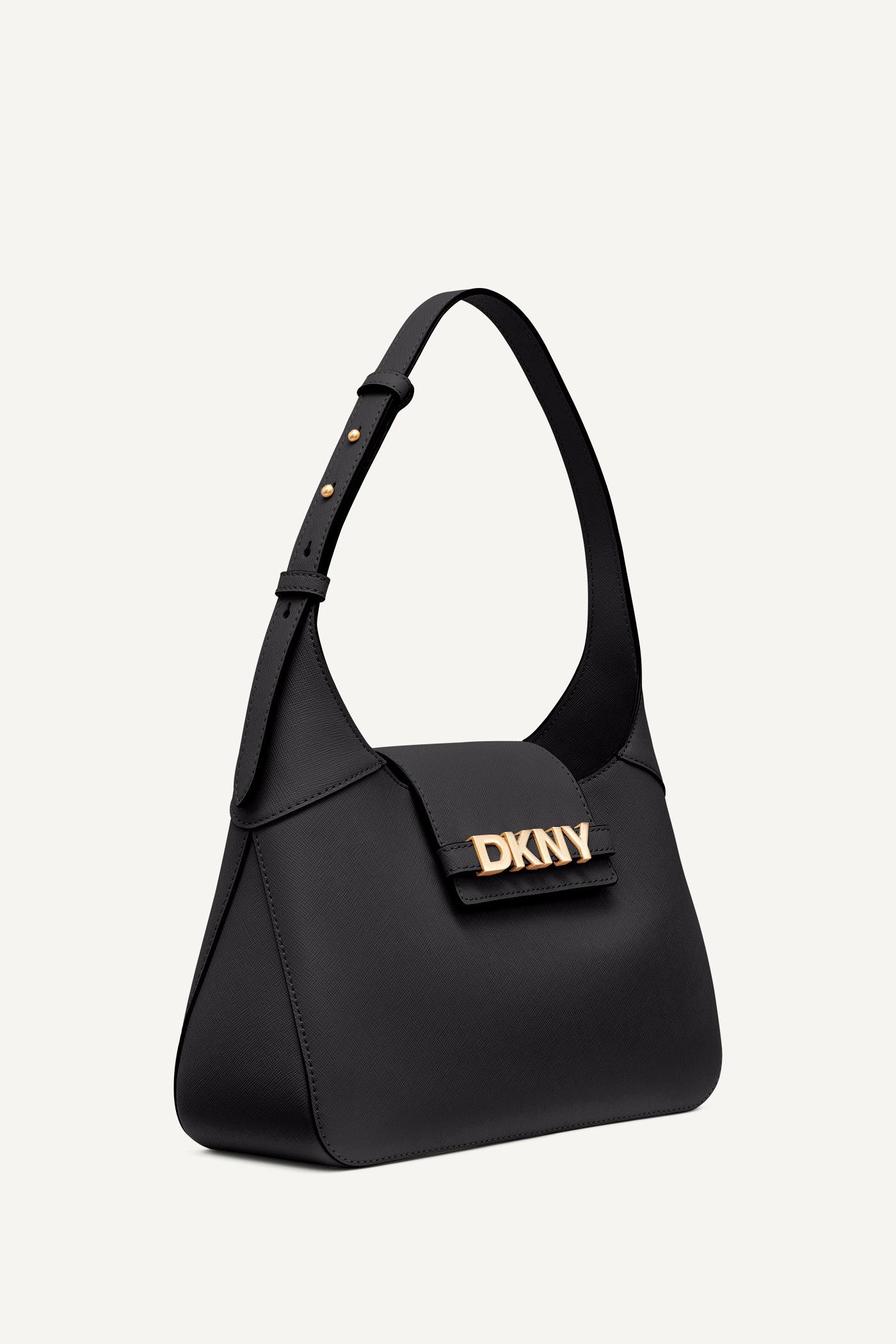 Elevate your everyday look with the DKNY Avril Shoulder Bag in classic black. This versatile bag features sleek contours, premium craftsmanship, and a spacious interior-perfect for essentials. Its elegant design transitions seamlessly from day to evening, offering timeless sophistication.