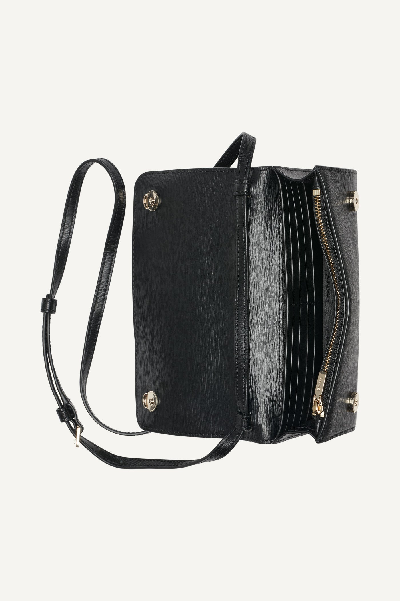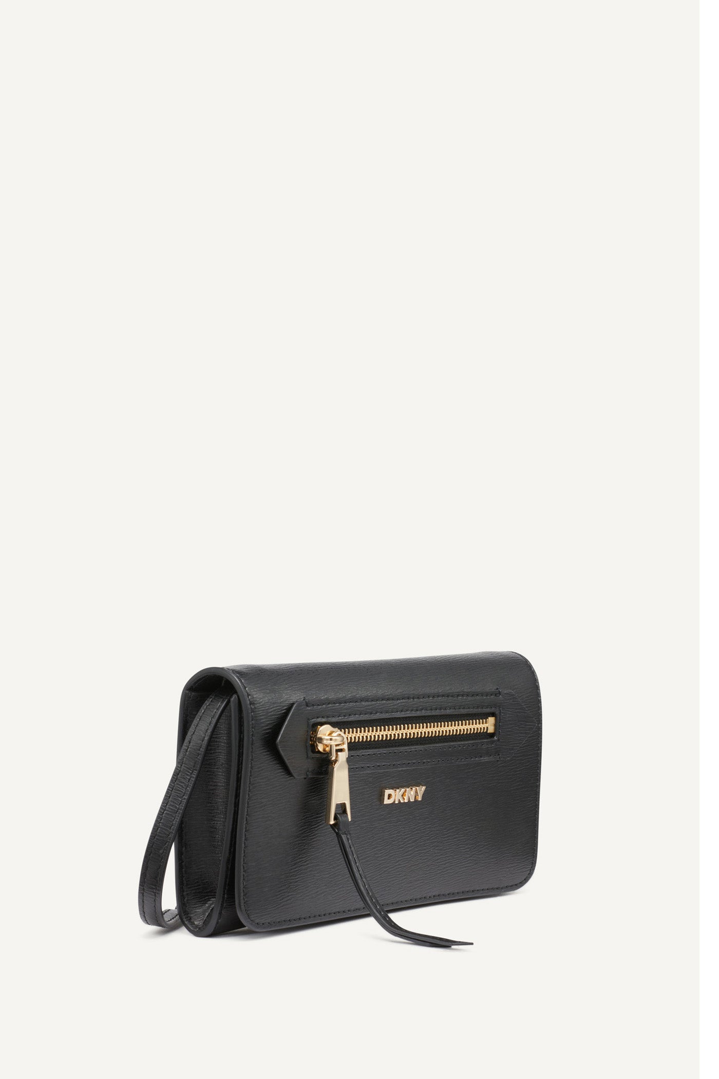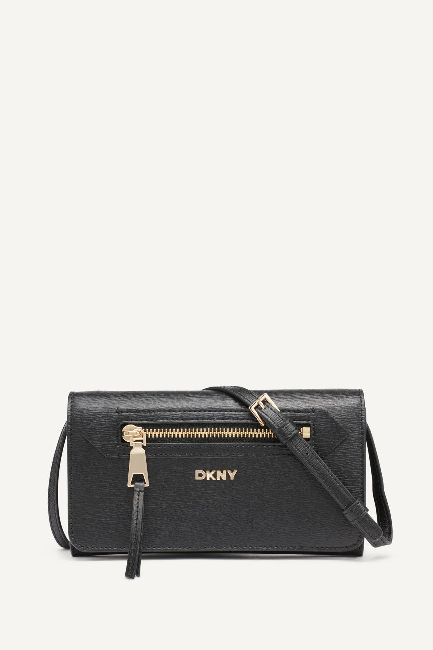 Elevate your accessories with the DKNY Bryant Avenue Wallet Crossbody in sleek black. Featuring a compact design with organized compartments for essentials, this versatile wallet seamlessly transitions from day to night, offering hands-free convenience and timeless modern style.