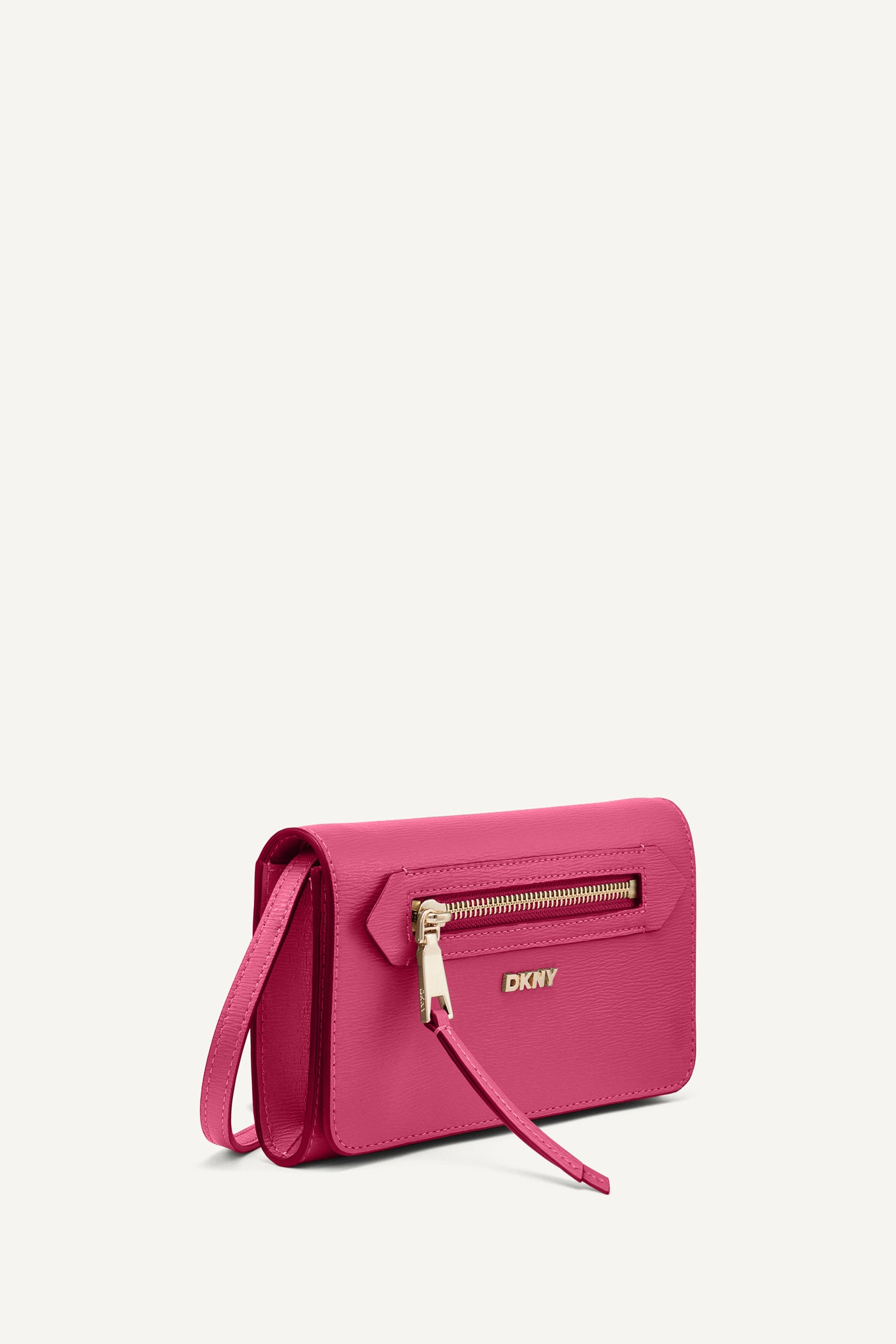 Elevate your essentials with the DKNY Bryant Avenue Wallet Crossbody in chic pink. Combining wallet organization and hands-free style, it features sleek compartments, secure closure, and a stylish crossbody strap-perfect for day-to-night versatility and modern on-the-go sophistication.