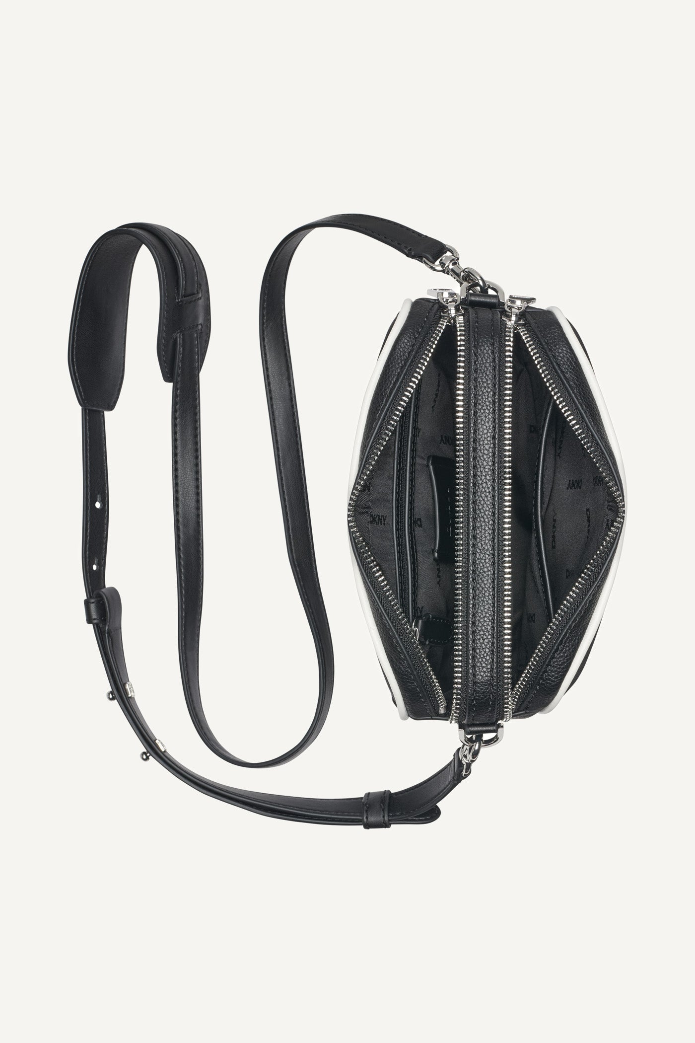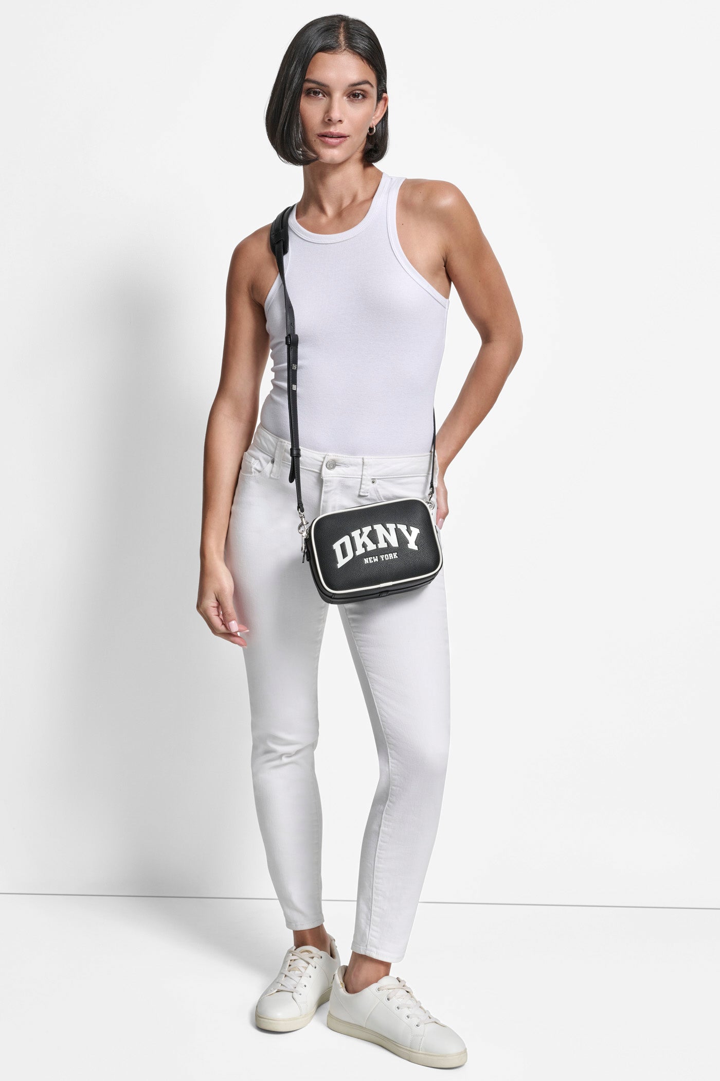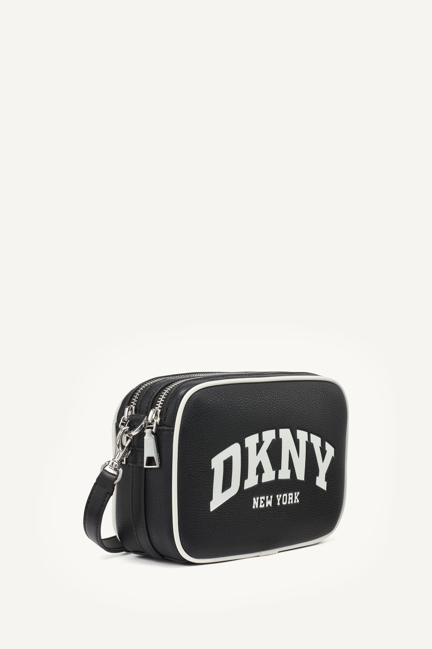 Elevate your style with the DKNY Nell Camera Bag in classic black. This chic crossbody bag features a sleek, compact design with secure zip closure, adjustable strap, and timeless branding perfect for carrying your essentials with effortless sophistication wherever you go.