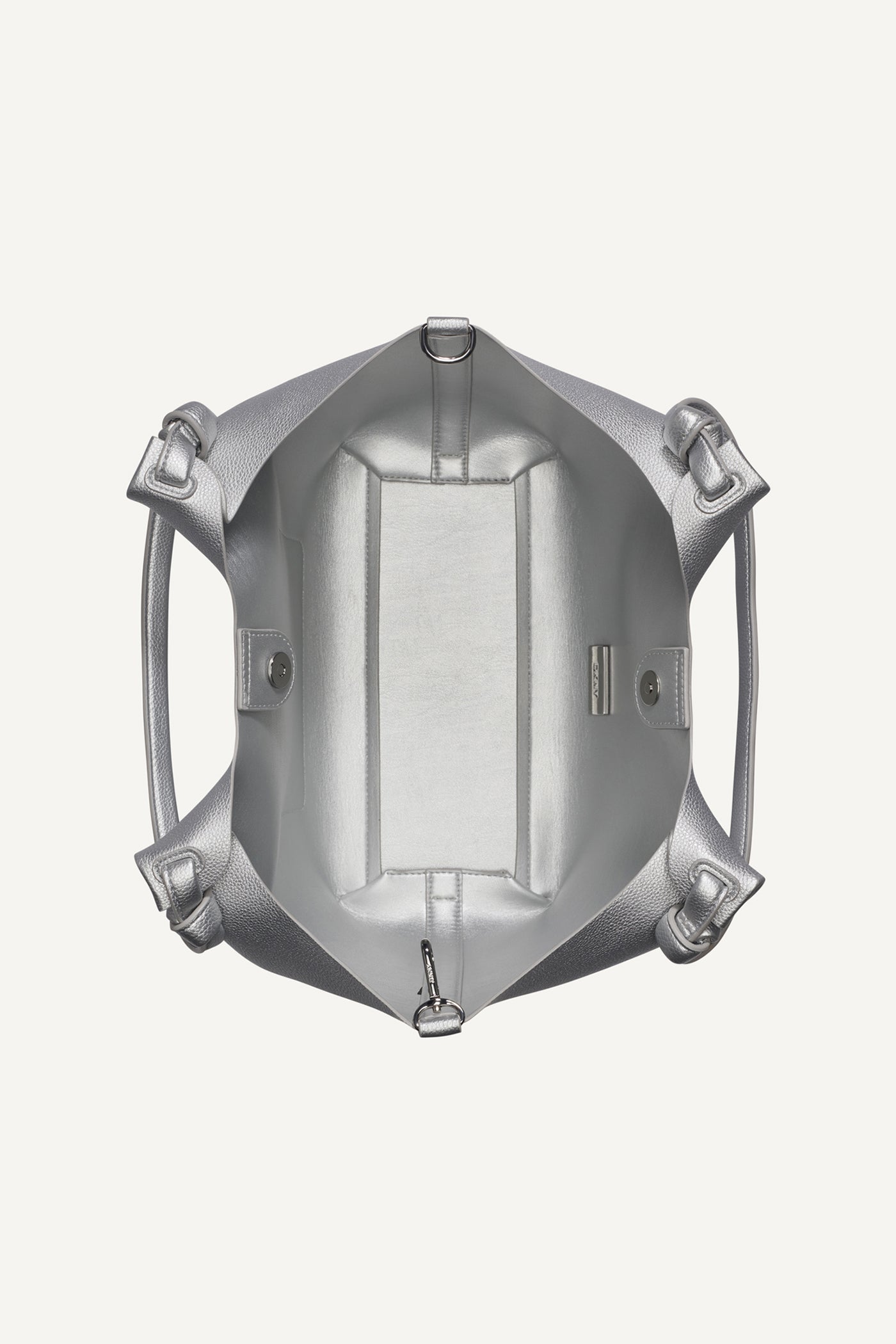 The PAULA Medium Tote combines contemporary design with practical sophistication. Crafted from premium polyurethane with a striking metallic finish, this versatile carryall delivers both style and durability. The medium silhouette offers ample space for daily essentials while maintaining an elegant profile. Perfect for transitioning seamlessly from office to evening occasions, this DKNY piece exemplifies refined craftsmanship and modern luxury.