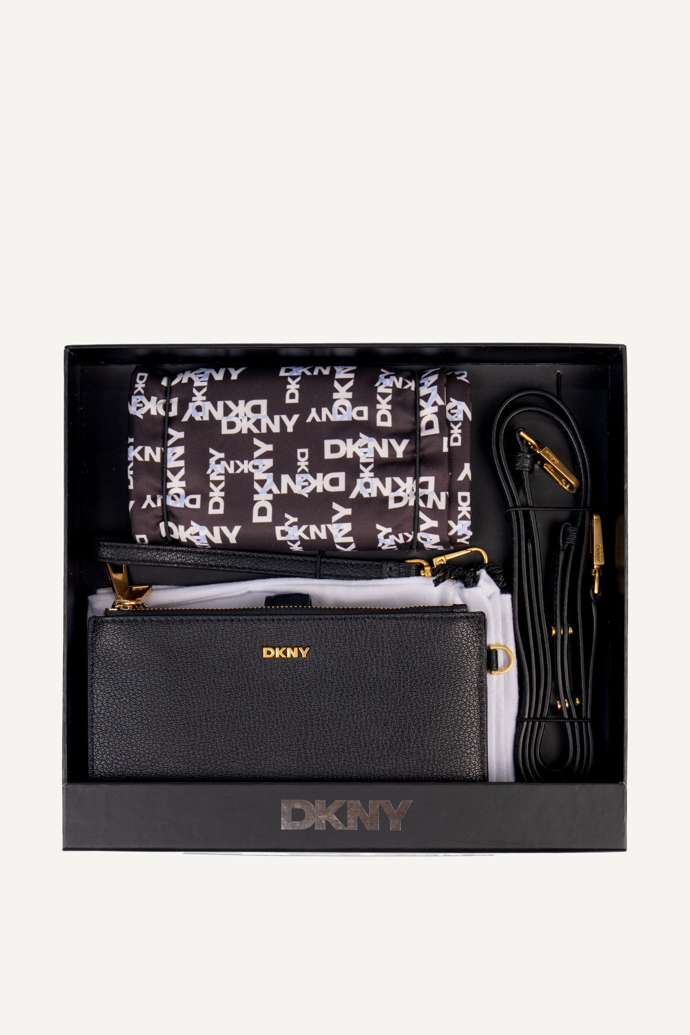 Elevate your essentials with the DKNY PAIGE Wallet on a Strap in chic black and gold. Featuring sleek hardware, multiple card slots, and a detachable strap, it effortlessly transitions from crossbody to clutch for versatile everyday luxury.