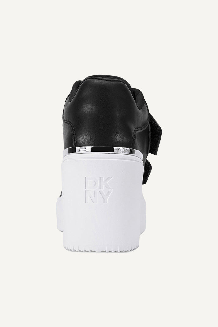 Elevate your casual look with the BALEY WEDGE SNEAKER from DKNY. Featuring a sleek black design, these shoes seamlessly blend comfort and style. Perfect for everyday wear, their wedge silhouette adds height while ensuring optimal support and all-day ease.