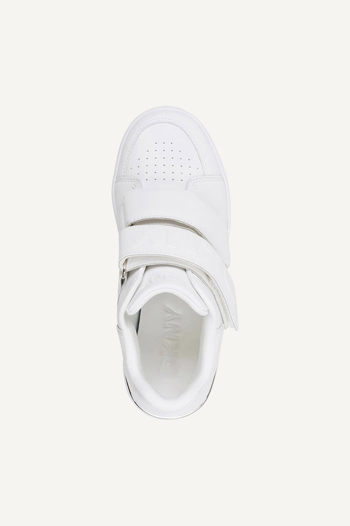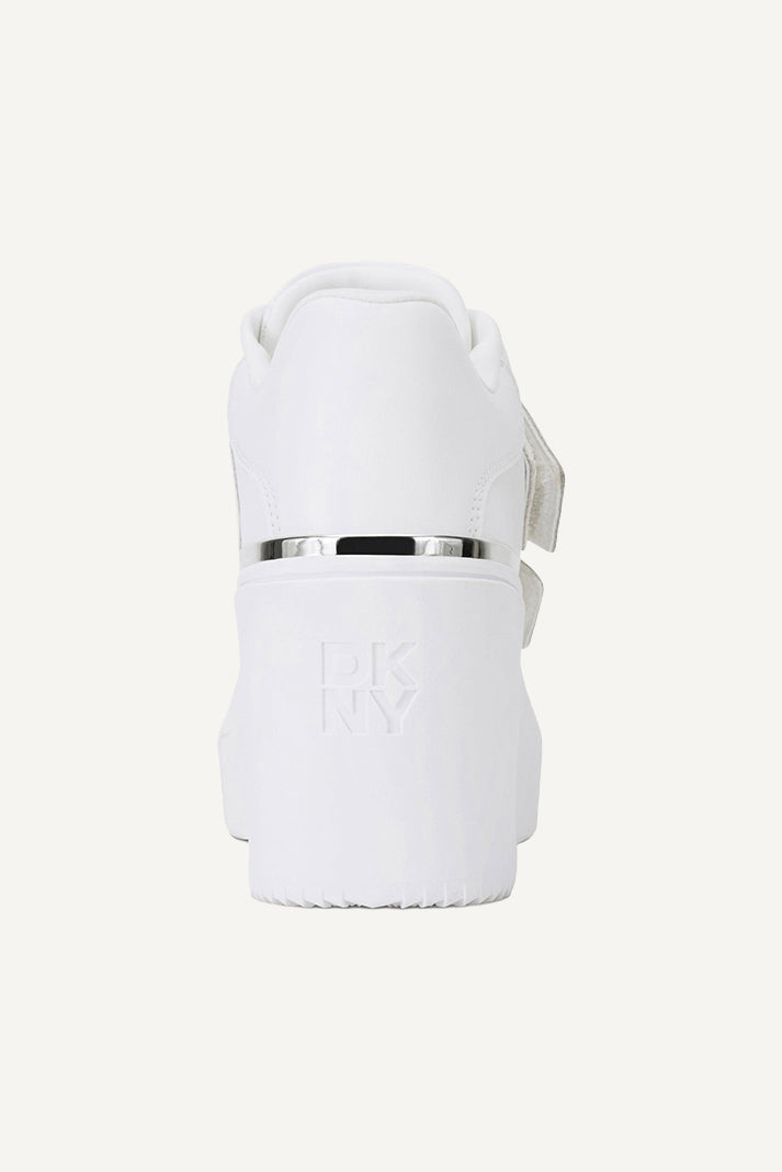 Step up your style with the DKNY Baley Wedge Sneaker in crisp white. This modern sneaker combines sporty comfort with chic elevation, featuring a concealed wedge heel, luxe detailing, and versatile design perfect for elevating any casual or athleisure outfit.