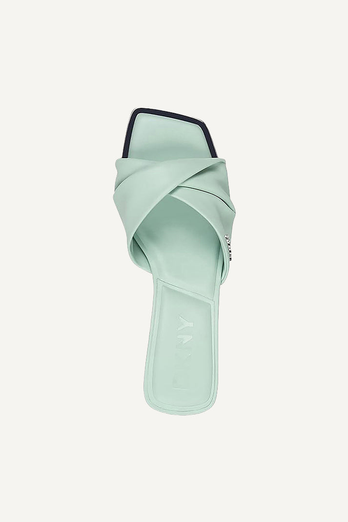 Elevate your holiday style with the JOLAINE TWIST MID HEEL MULE by DKNY. In a vibrant green hue, these mules feature a sophisticated twist design, perfect for festive gatherings. Effortlessly chic, they offer comfort and elegance in every step.