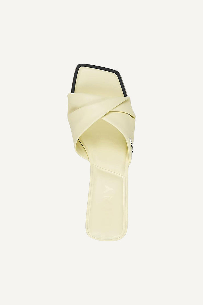 Step into elegance with the JOLAINE TWIST MID HEEL MULE by DKNY. This vibrant yellow statement piece effortlessly combines style and comfort, making it perfect for the Holiday24 season. Upgrade your wardrobe and shine in every festive gathering.