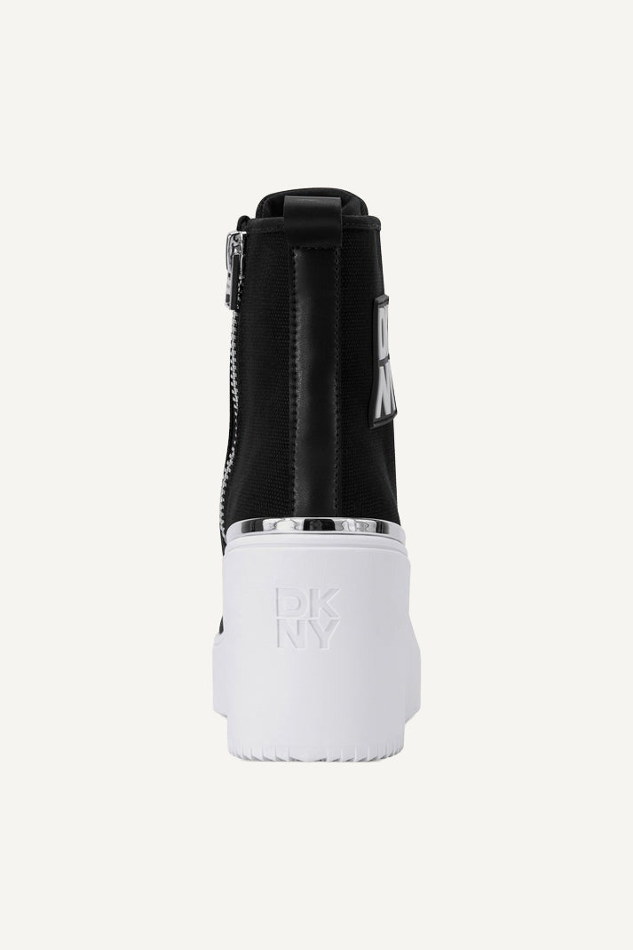Experience ultimate comfort and style with the DKNY BAX Wedge Sneaker in classic black. Perfectly blending a sporty silhouette with a chic wedge, these shoes elevate any outfit, offering all-day comfort while maintaining a sleek, modern aesthetic for fashion-forward individuals.