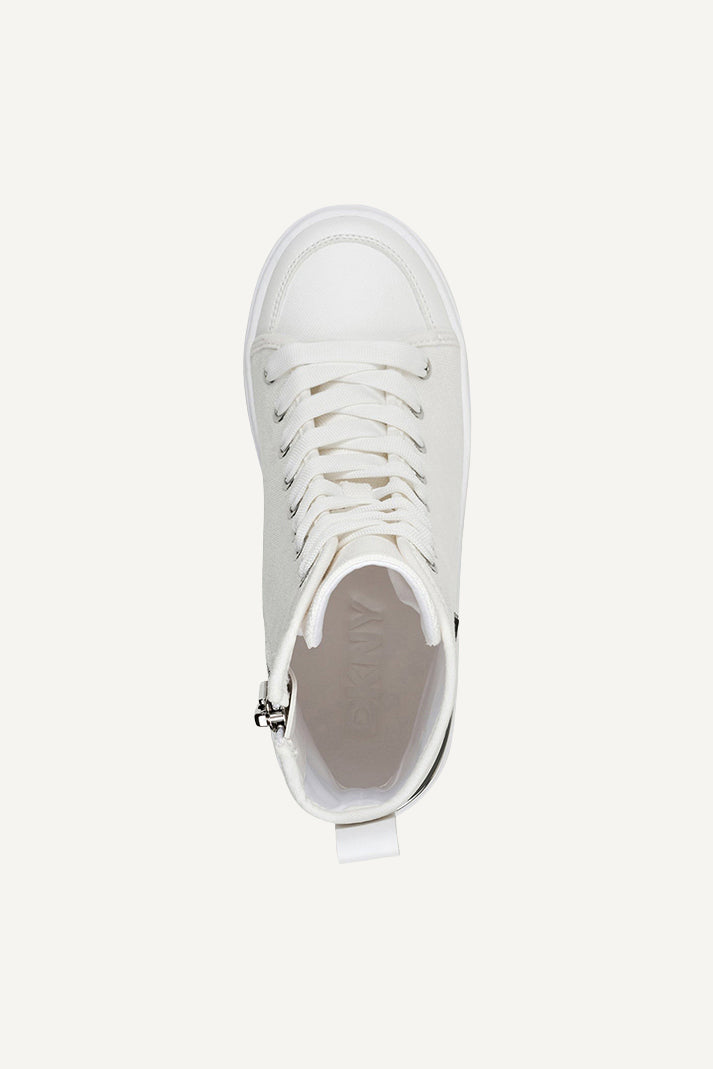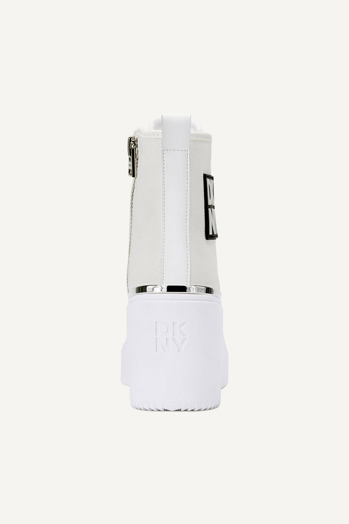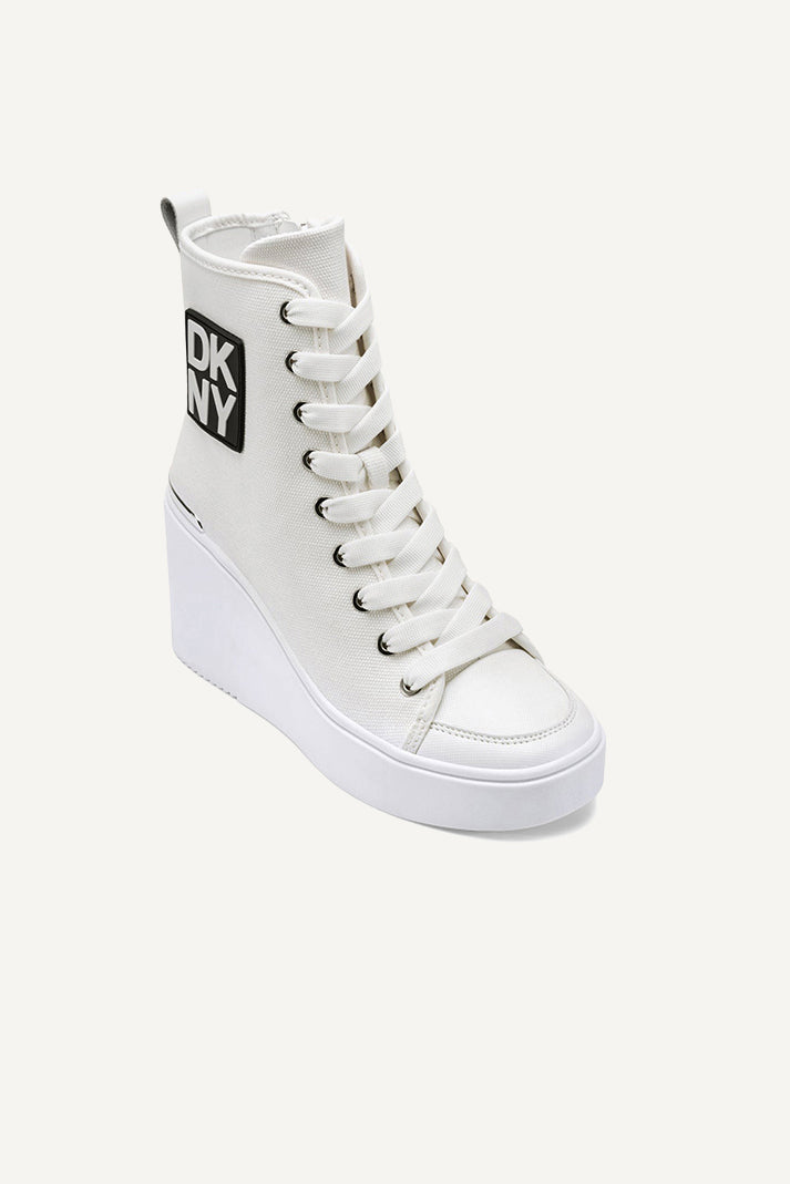 Step up your street style with DKNY's BAX WEDGE SNEAKER in fresh white. Featuring a modern wedge sole for added height and comfort, these sneakers combine sporty vibes with urban sophistication-perfect for elevating casual outfits or athleisure looks.