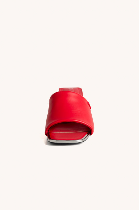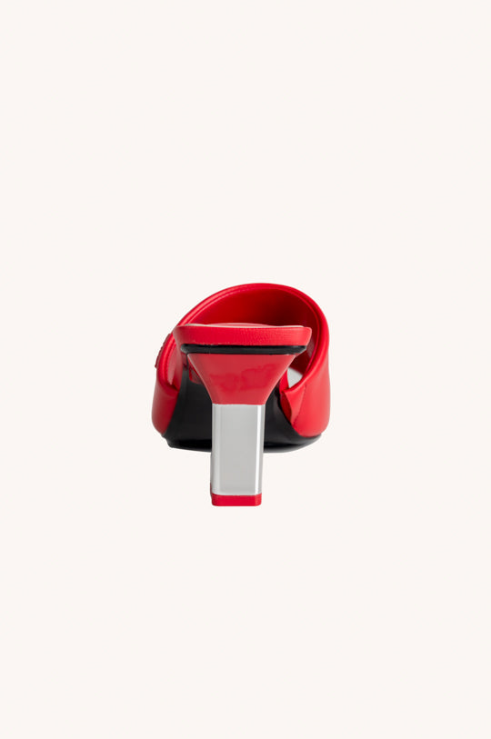 Step into elegance with the KELLEY HEELED MULE by DKNY. Radiating festive charm in vibrant red, these mules are perfect for any holiday season celebration. Elevate your style effortlessly with their sleek design, combining comfort and sophistication for unforgettable occasions.