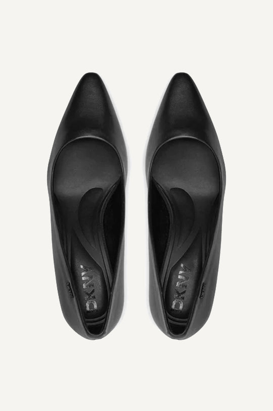Elevate your style with DKNY's Charlie mid-heeled pointed pumps. This sleek black shoe seamlessly blends comfort and sophistication, perfect for any occasion. The elegant pointed toe and versatile mid heel ensure a timeless addition to your footwear collection.