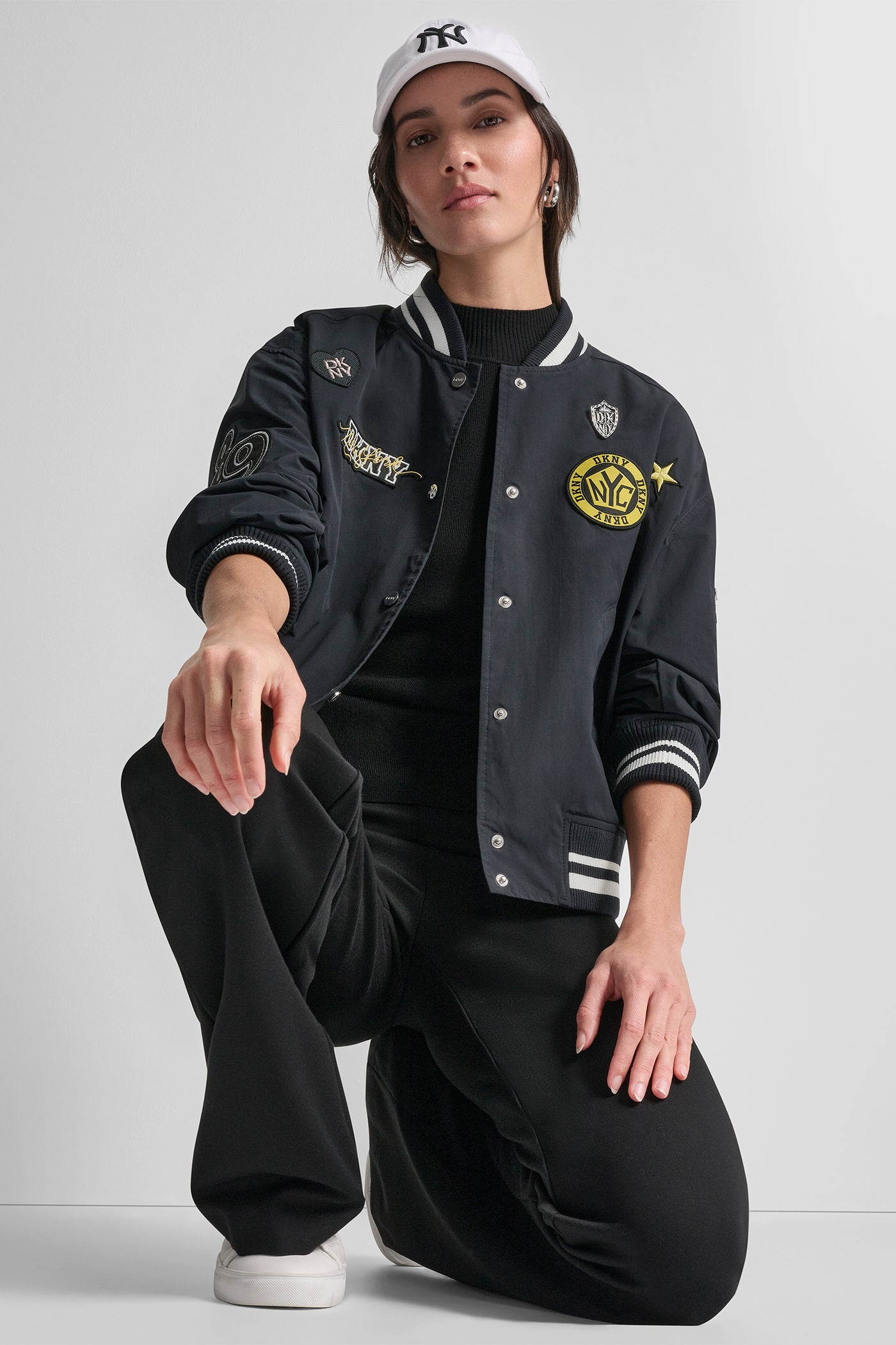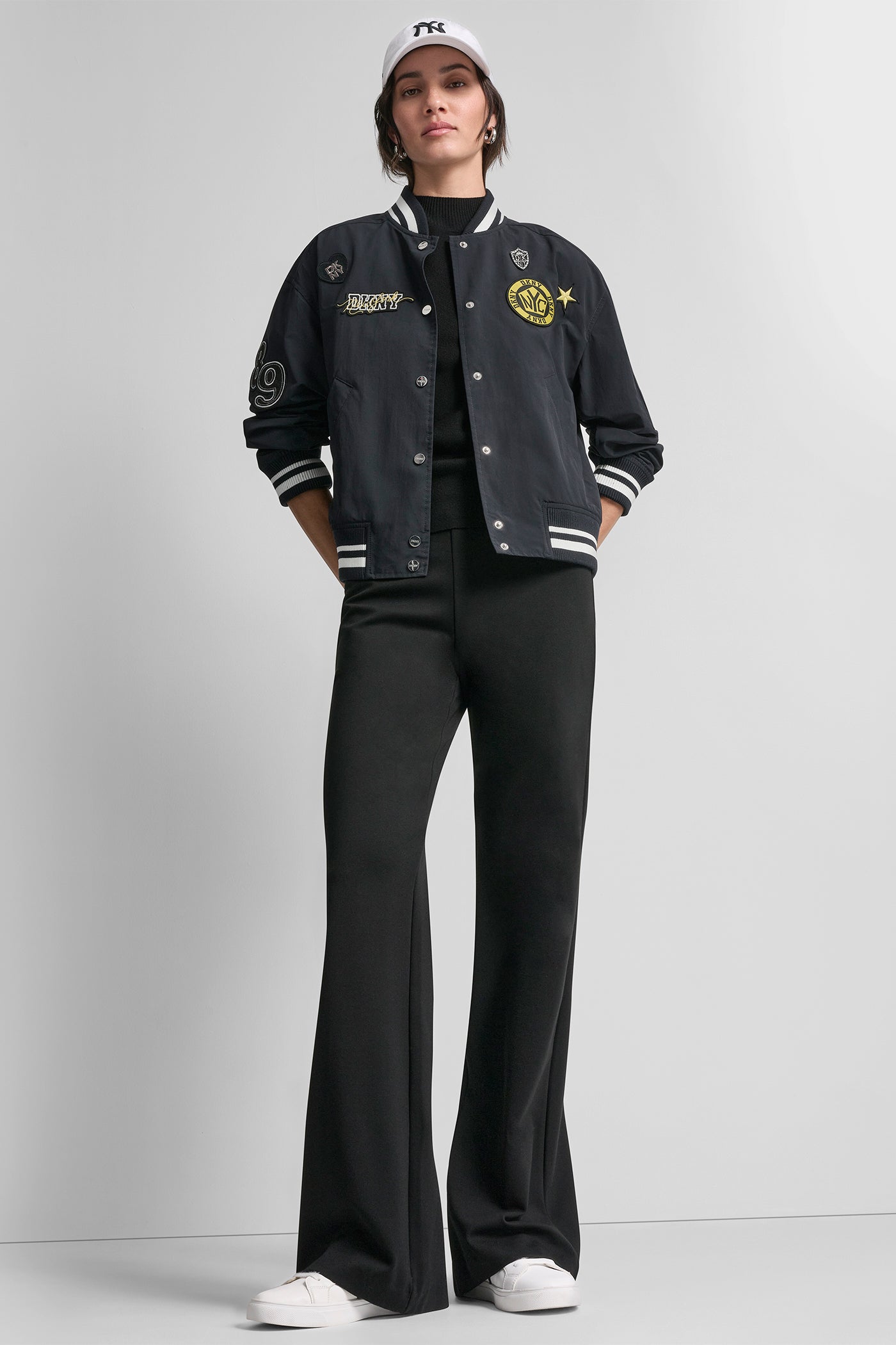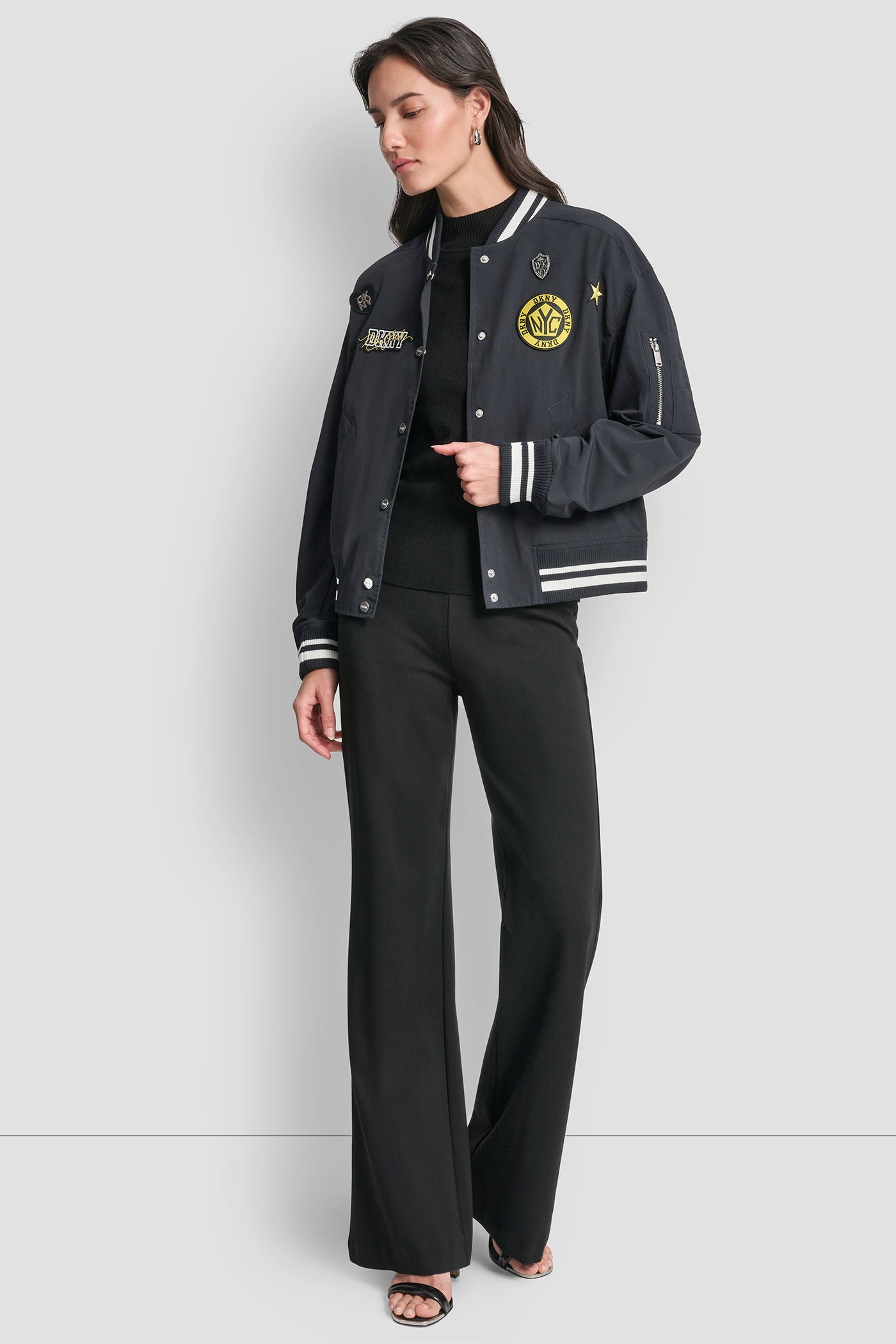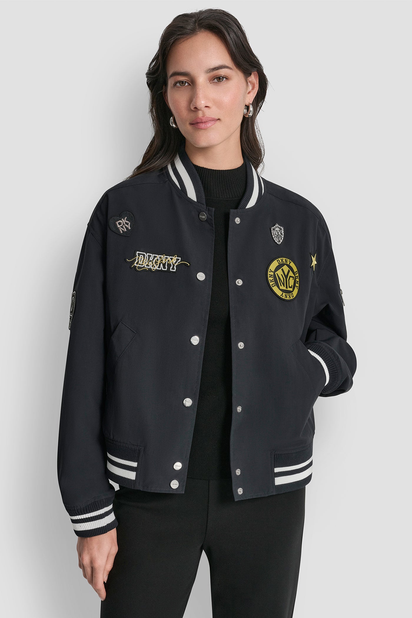 Elevate your outerwear with this DKNY LONG SLEEVE 1989 PINS & PATCH jacket in striking blue. Crafted from 100% polyester for lightweight comfort, eclectic pins and patches add playful personality perfect for making a bold style statement in any season. Item ID: P6BJ1EIDNVY