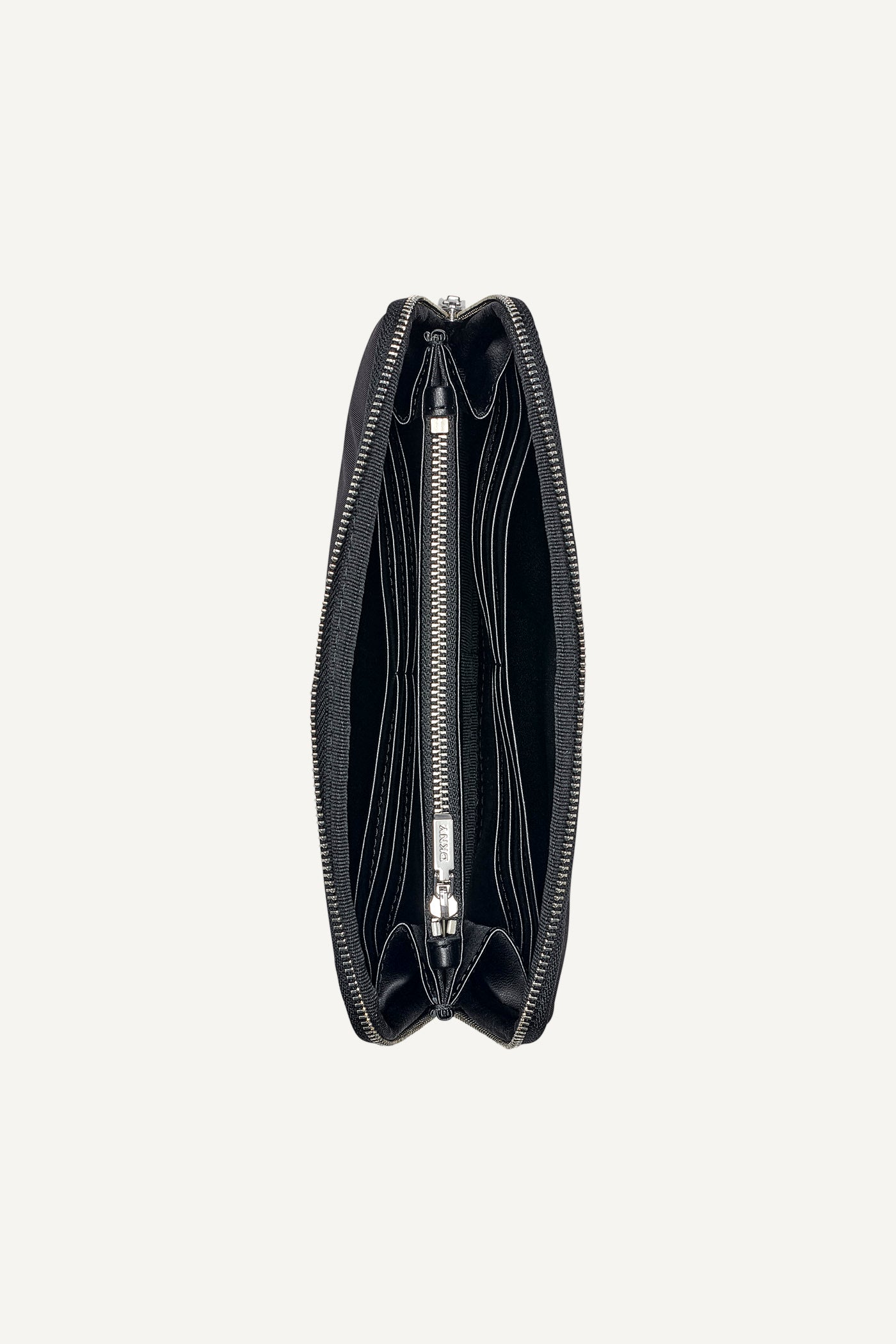 Sleek and functional, the DKNY JENNY Zip Around Wallet in timeless black keeps essentials organized. Featuring dedicated card slots, a zipped coin pocket, and luxurious detailing, this compact accessory brings modern sophistication to your everyday style. Perfect for on-the-go elegance.