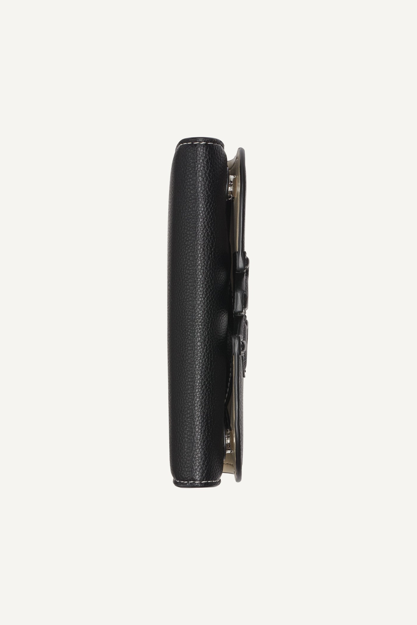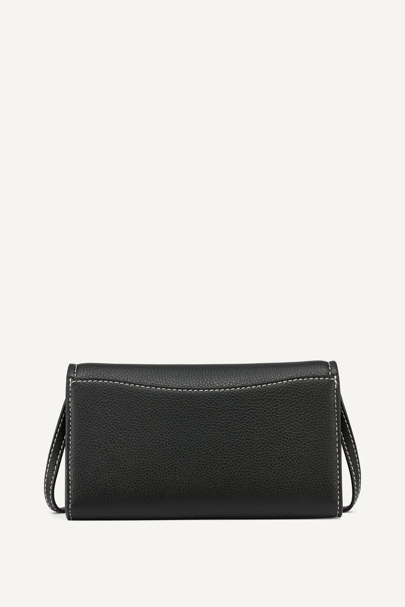 Elevate your look with the DKNY Nicole Wallet on a Strap in classic black. This sleek accessory keeps essentials organized with multiple card slots and a secure closure, effortlessly doubling as a chic crossbody for hands-free versatility and everyday sophistication.