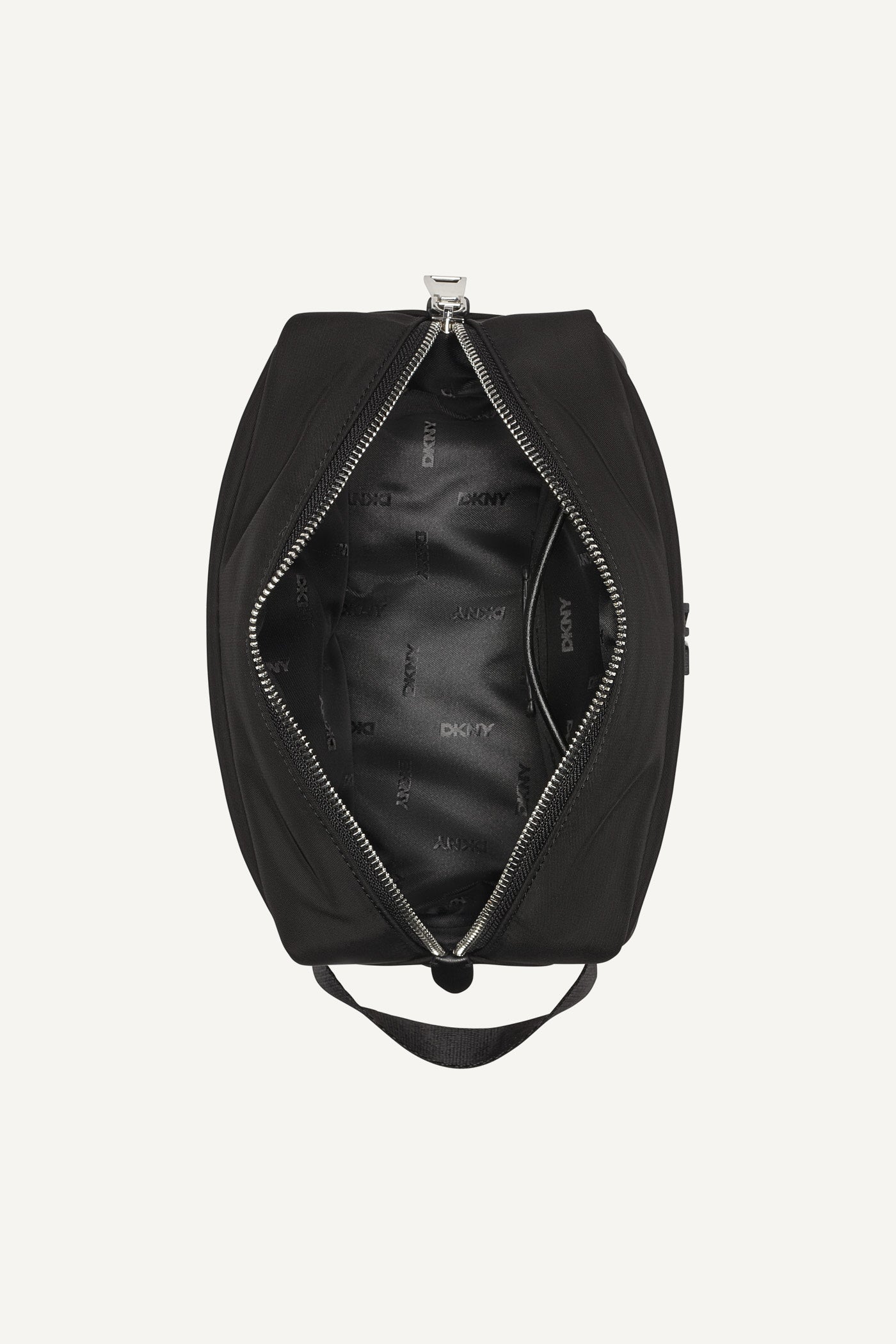 Keep your essentials organized with the DKNY Jenny Travel Pouch in classic black. This sleek, versatile accessory easily fits cards and cash, combining elegance with practicality-perfect for travel or everyday use. Elevate your style with this timeless wallet option.