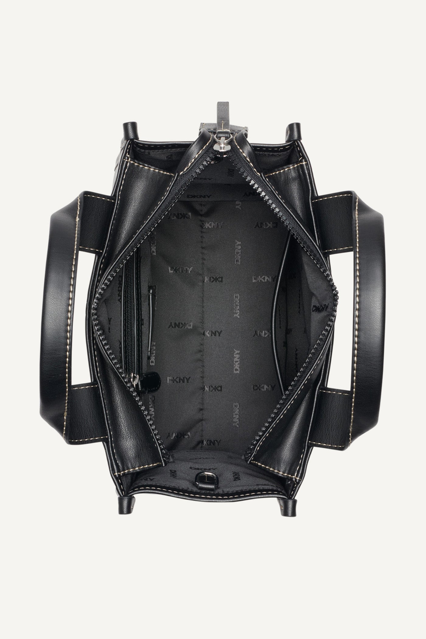 The DKNY Hadlee Small Tote in classic black brings effortless elegance to your daily routine. Spacious enough for essentials, its sleek silhouette and sturdy straps make it perfect for work or weekends. Elevate any outfit with this timeless tote bag.