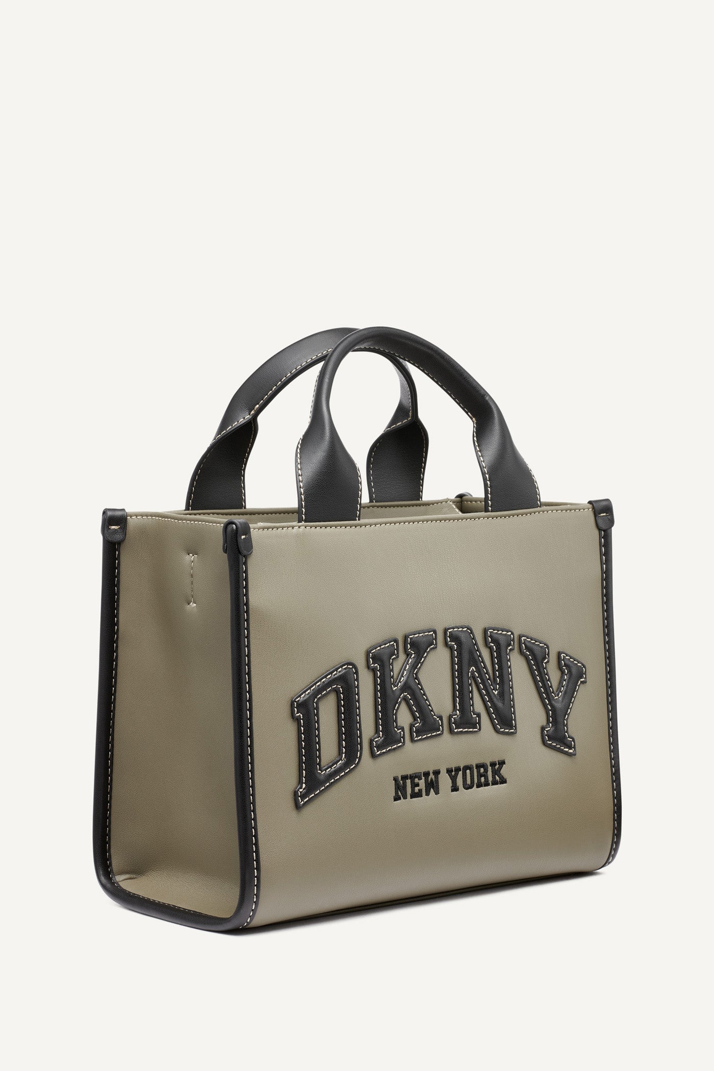 Add a pop of color to your look with DKNY's HADLEE SMALL TOTE in vibrant green. Compact yet spacious, this chic tote bag features sturdy handles and sleek detailing-perfect for everyday essentials and effortless style wherever your day takes you.