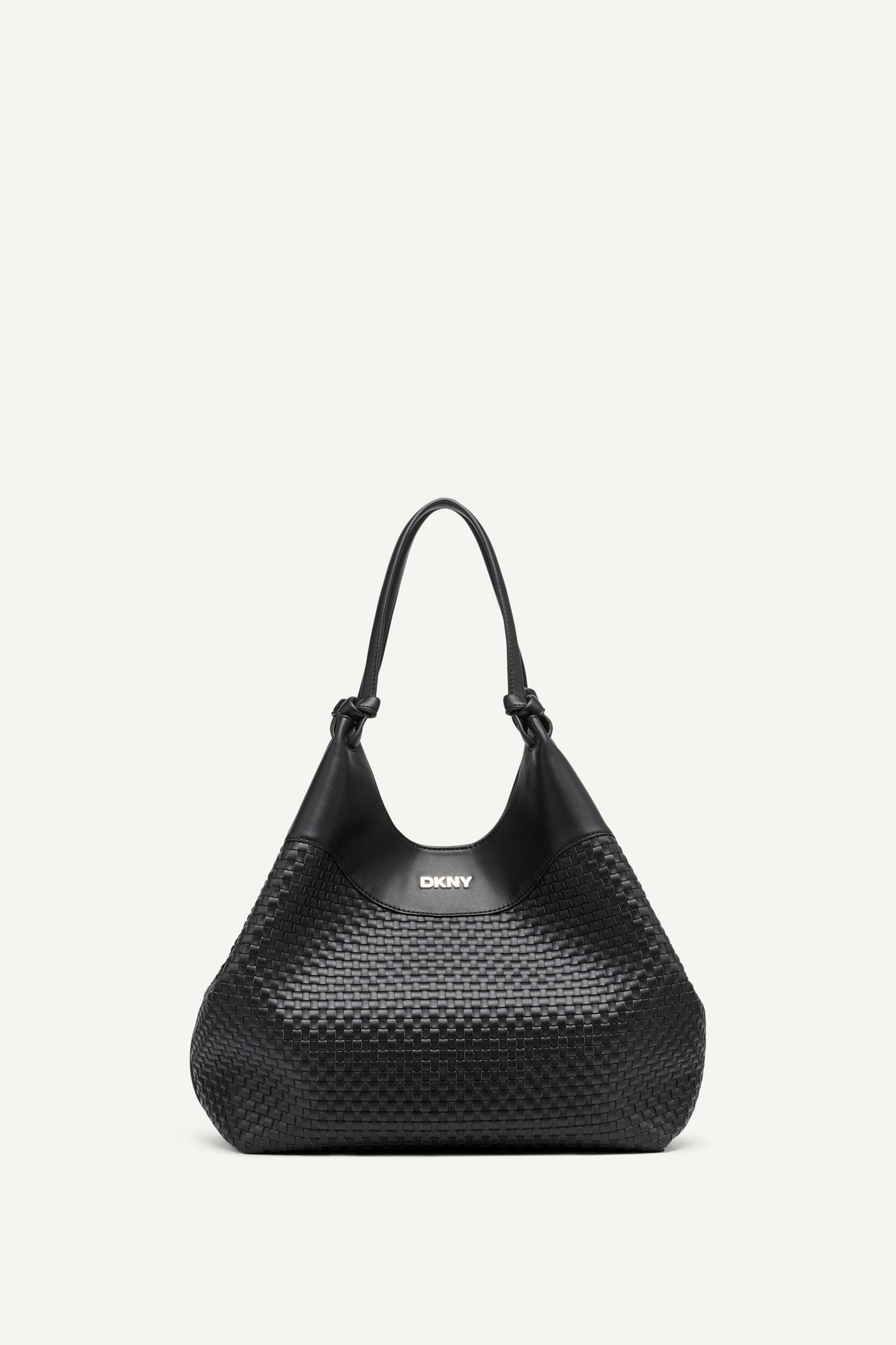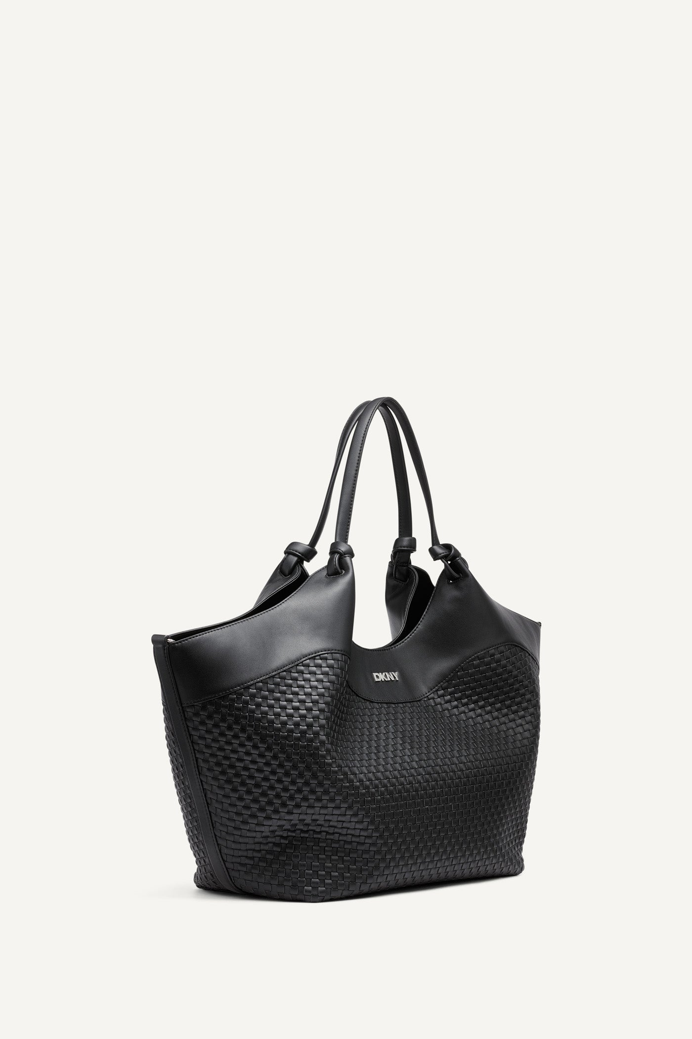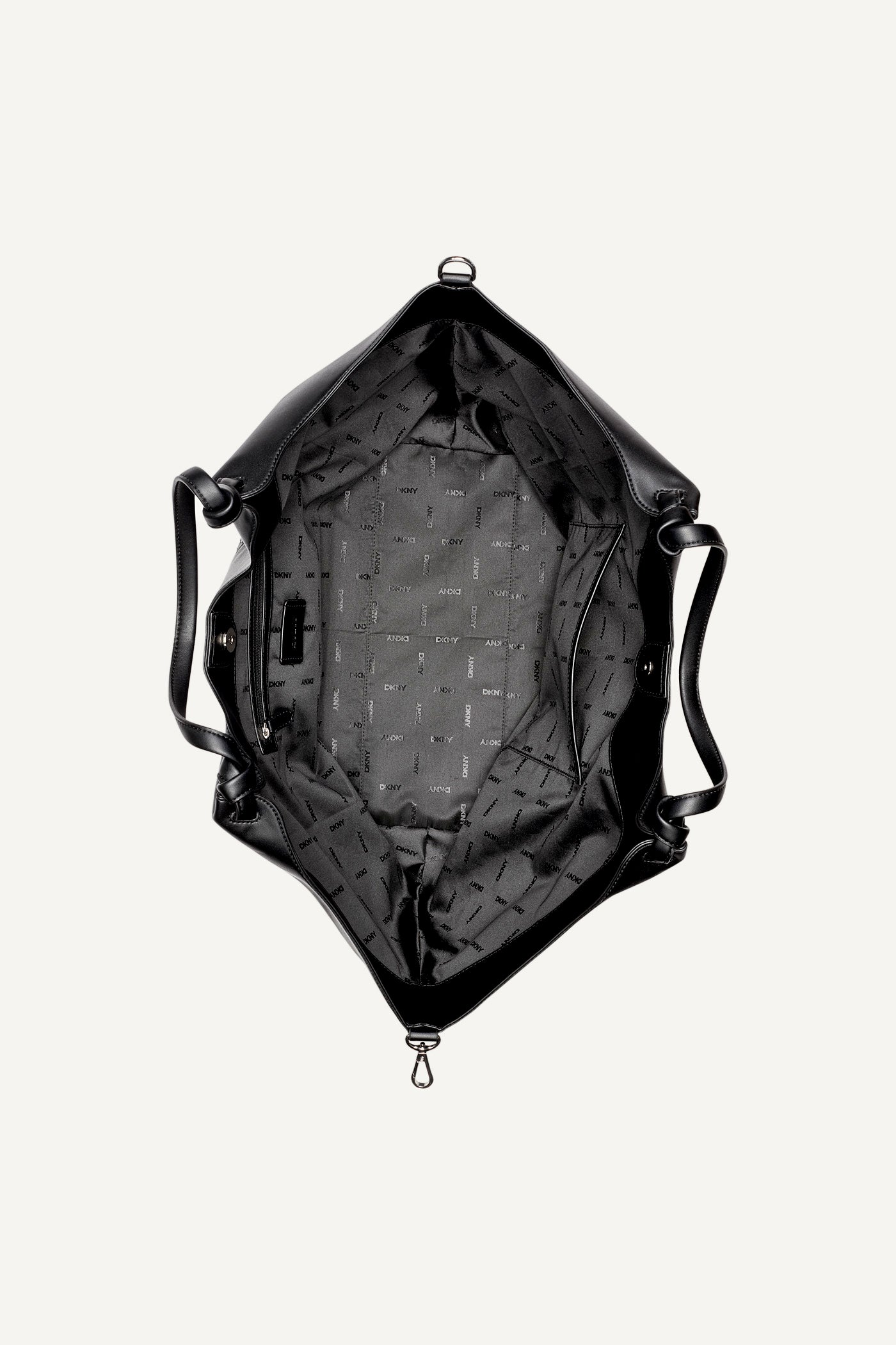 Elevate your everyday style with the DKNY Paula Large Tote in classic black. Featuring spacious compartments, sturdy double handles, and sleek gold-tone accents, this elegant tote is perfect for carrying daily essentials with sophistication, ideal for work or travel.